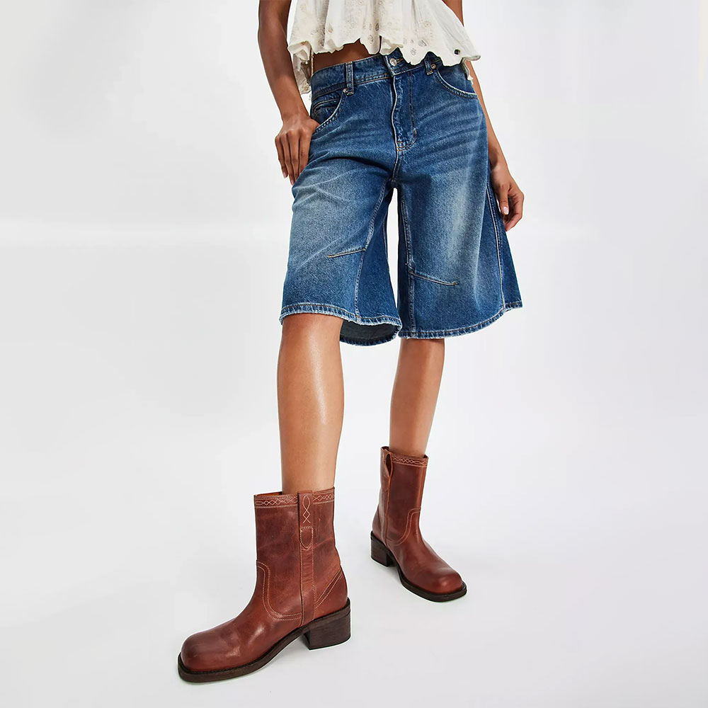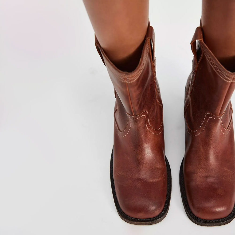 • Special Designs: The cowgirl boots have a square toe, an embroidered edge, and an ankle-length design.