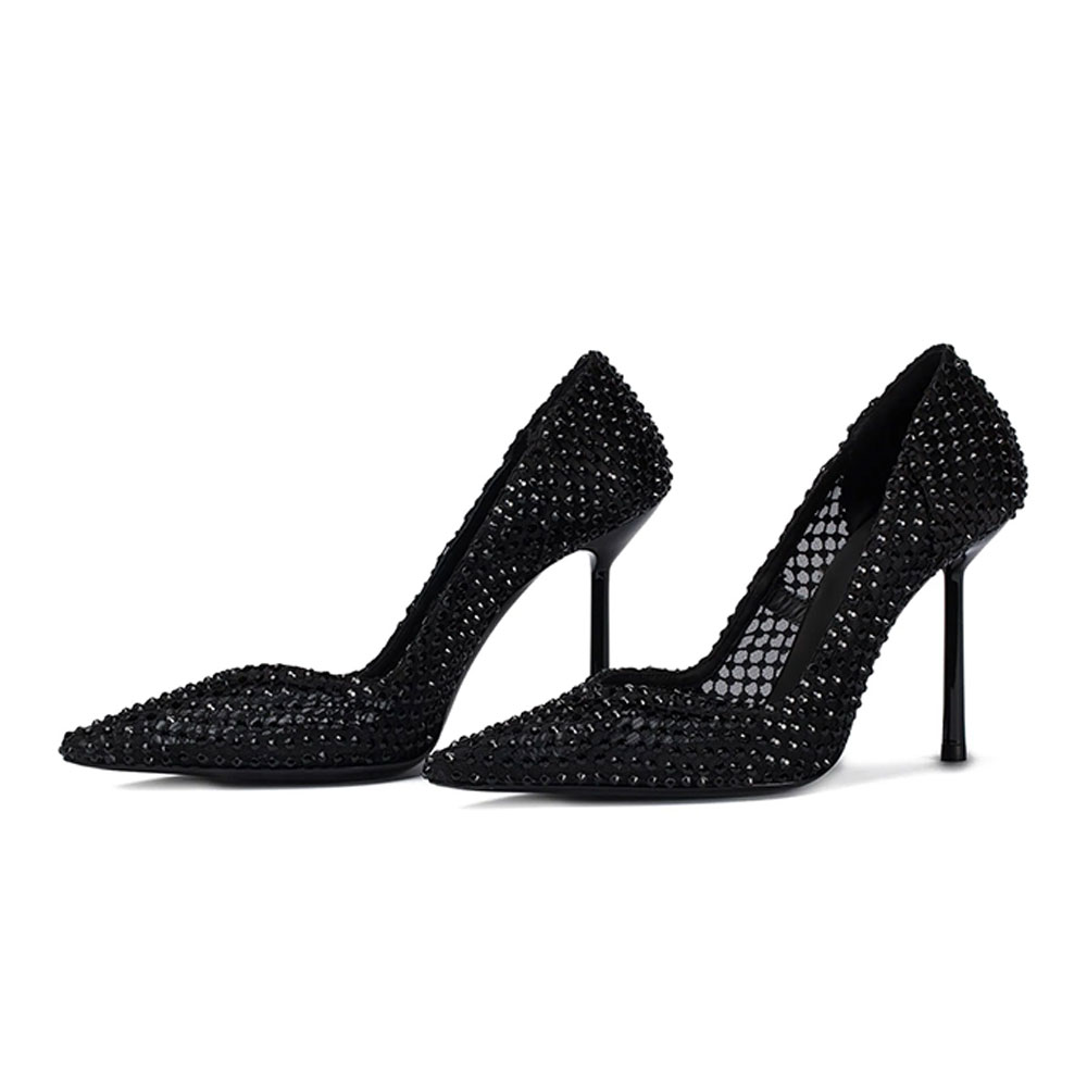 Special Designs: The pumps feature a classic black color, a breathable mesh, a high heel, and a pointed toe design.