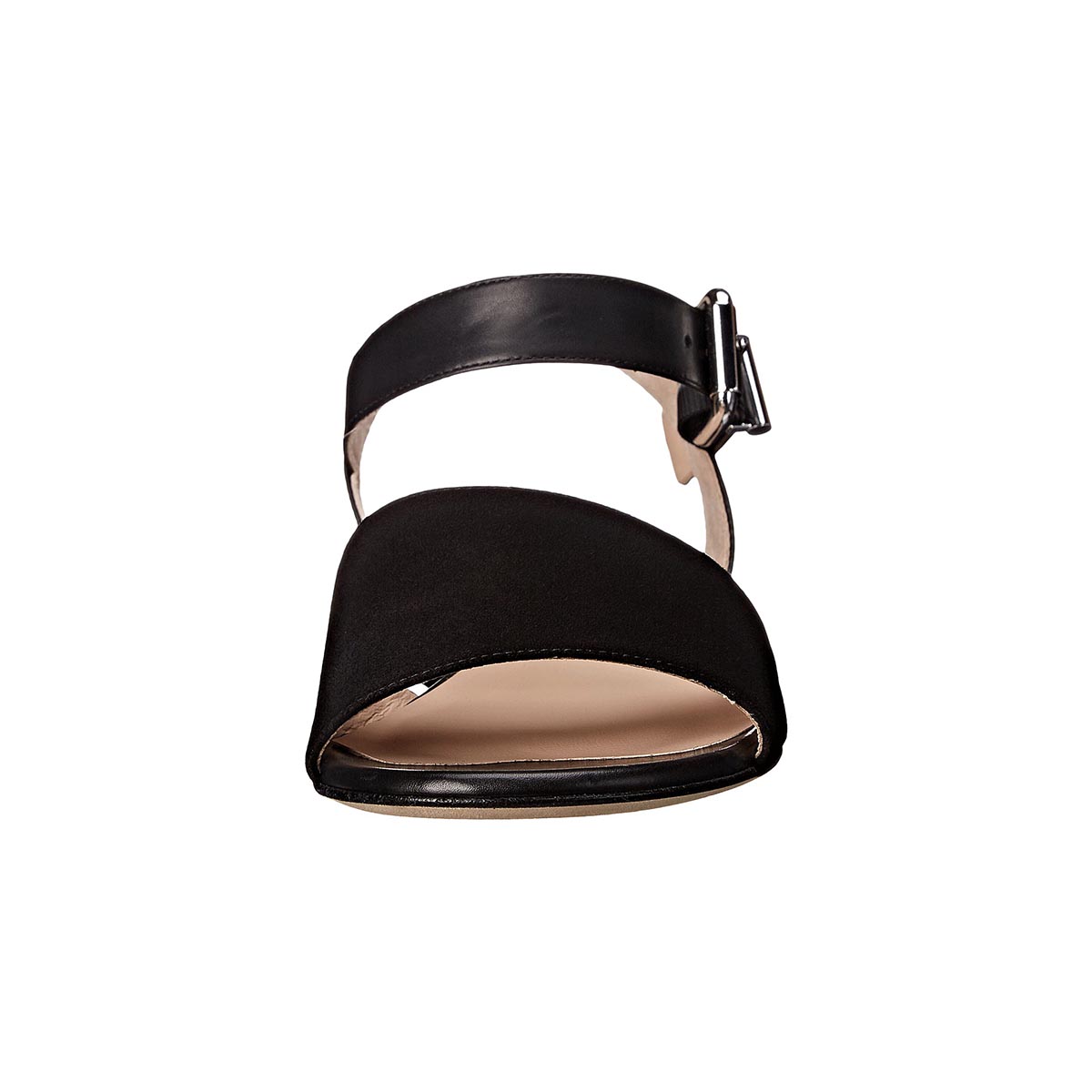 Round Toe Buckled Ankle Straps Flat Black Sandals for Women