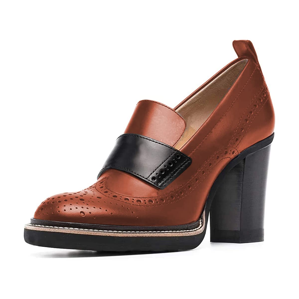 Special Designs: The round-toe loafers feature chunky heels and a Brogue-style design.