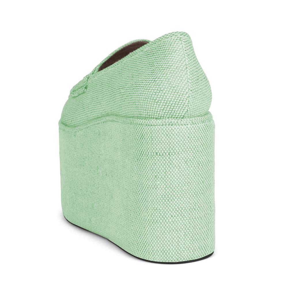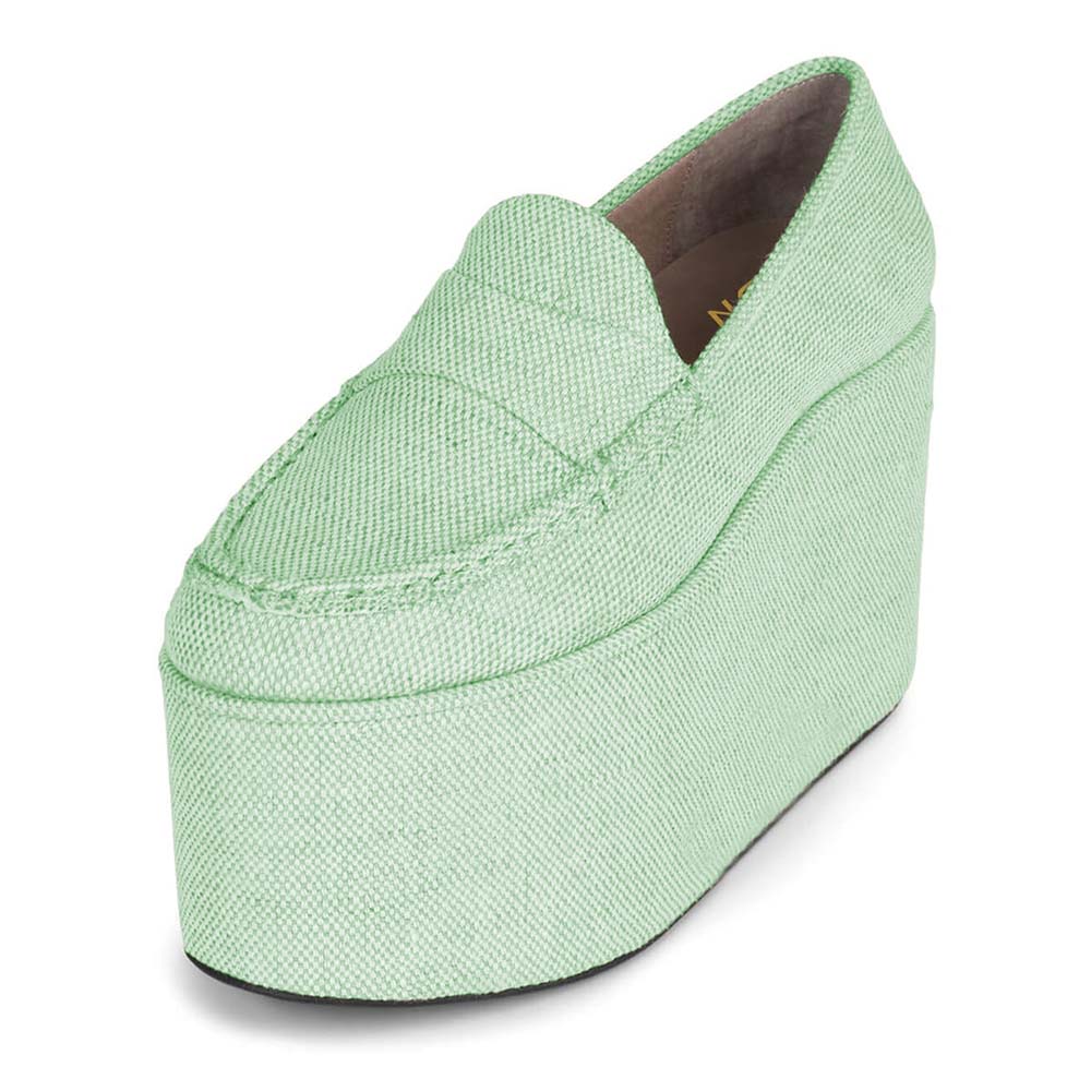 Round Toe Platform Wedge Heel Loafer Shoes Women in Light Green