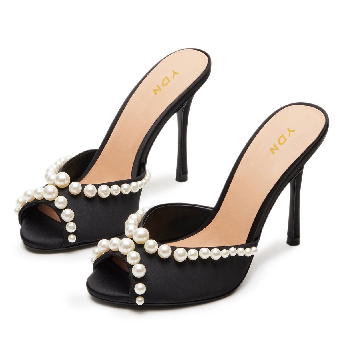 Satin Pearl Embellished Wide Band Elegant Mules with Stiletto Heel