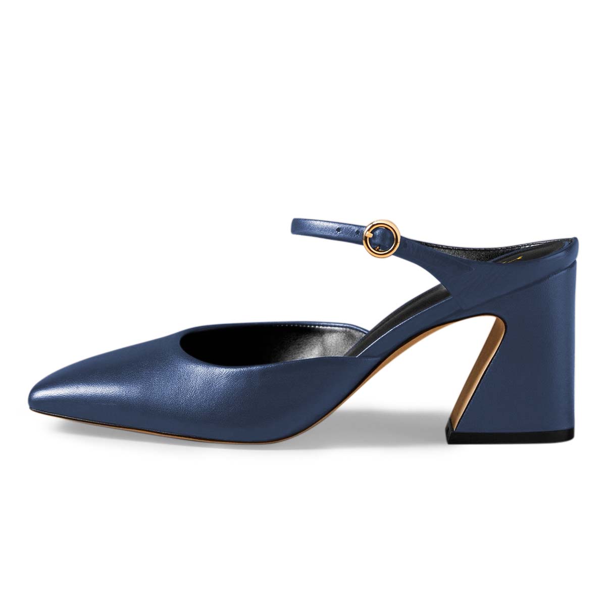 Shiny Dark Blue Vegan Leather Square Toe Classy Heel Mary Janes