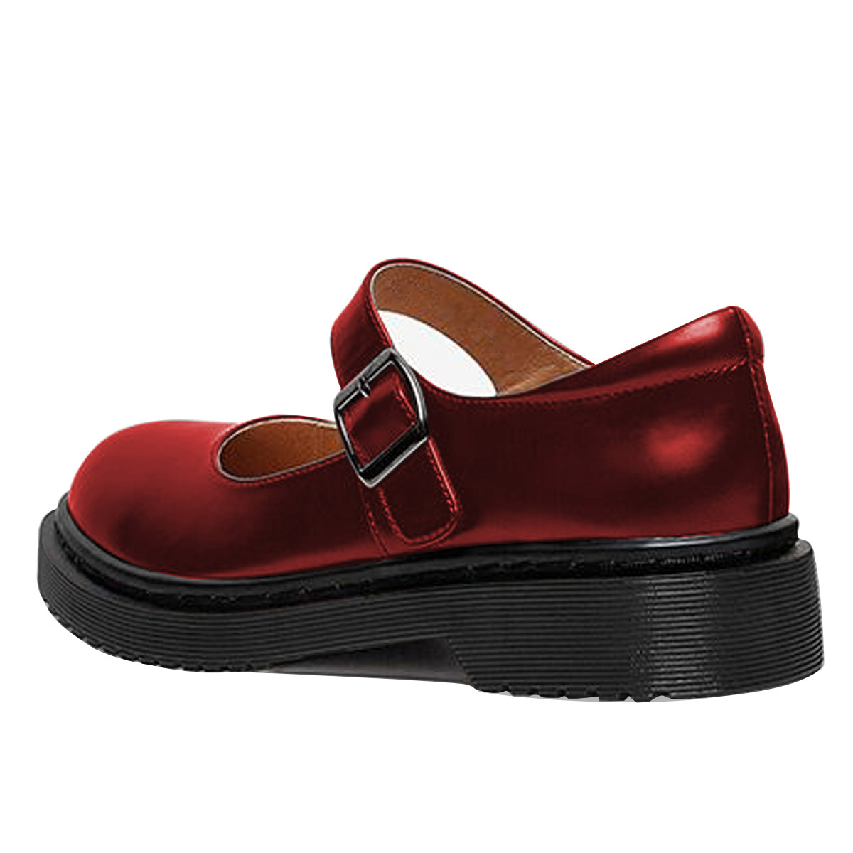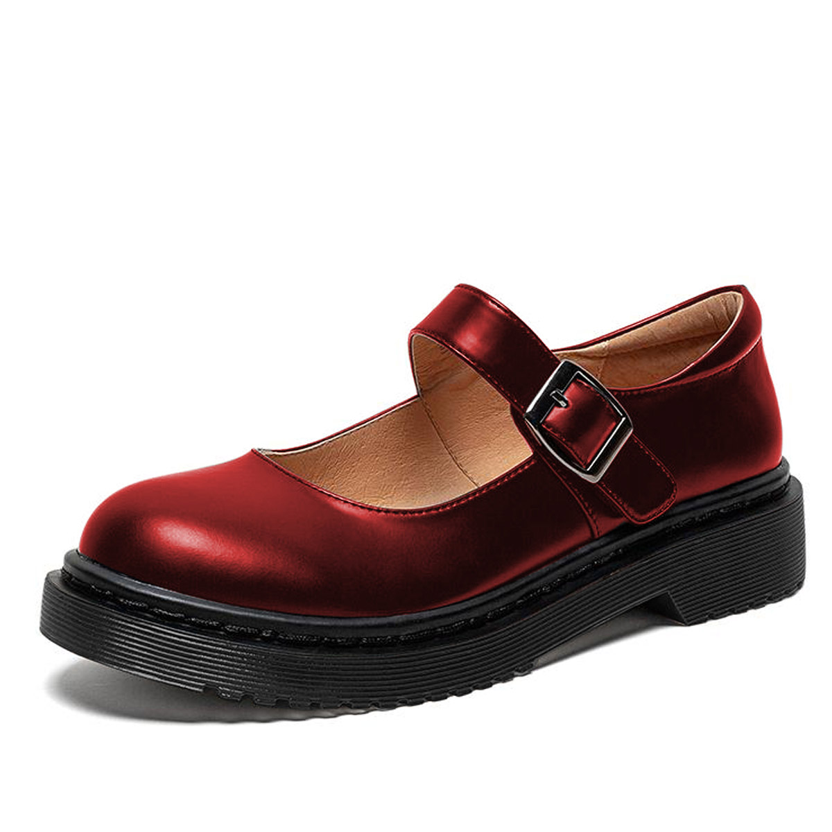 Shiny Maroon Vegan Leather Round Toe Formal Comfy Mary Jane Shoes