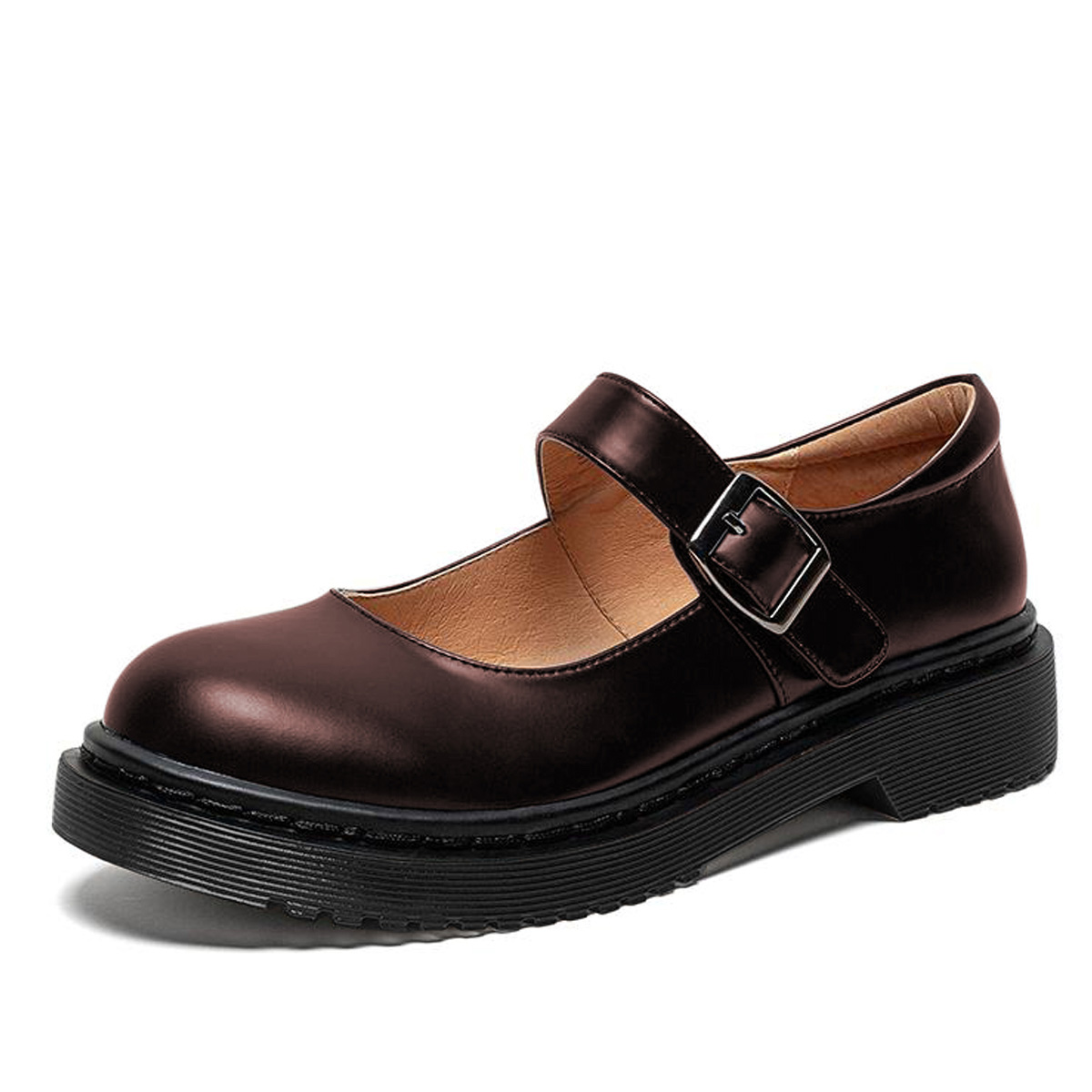 Shiny Vegan Leather Round Toe Comfy Formal Mary Jane Shoes in Brown