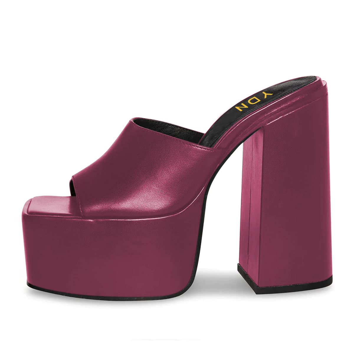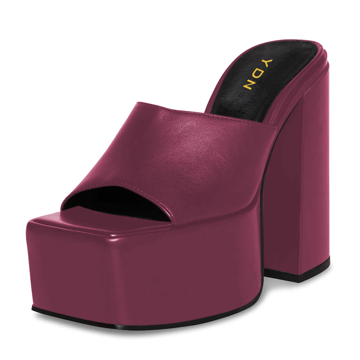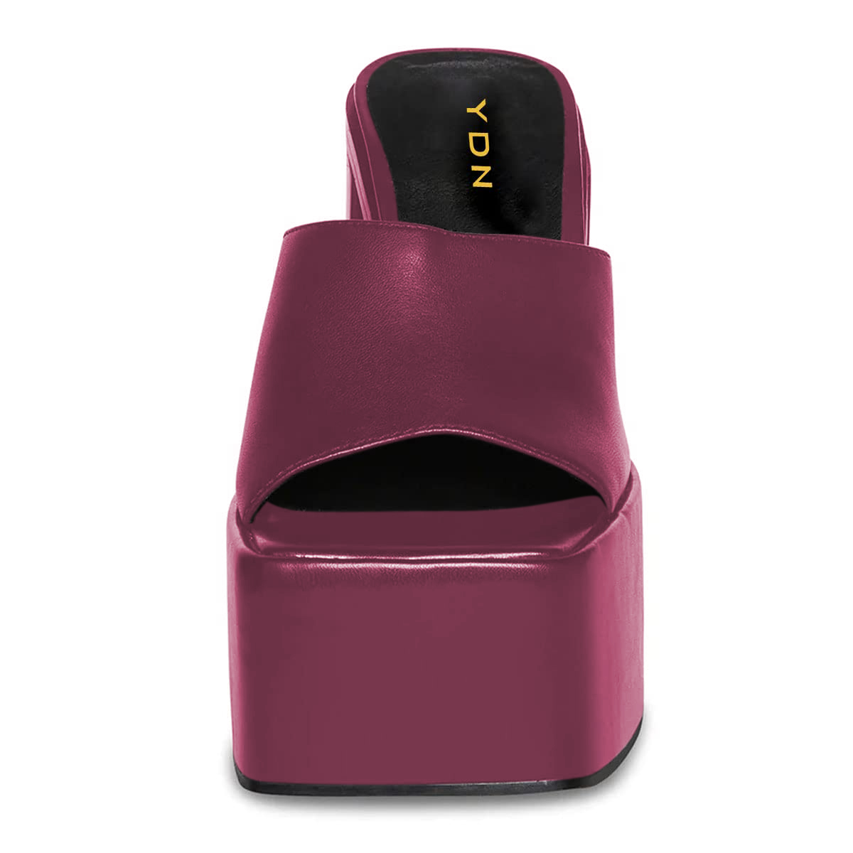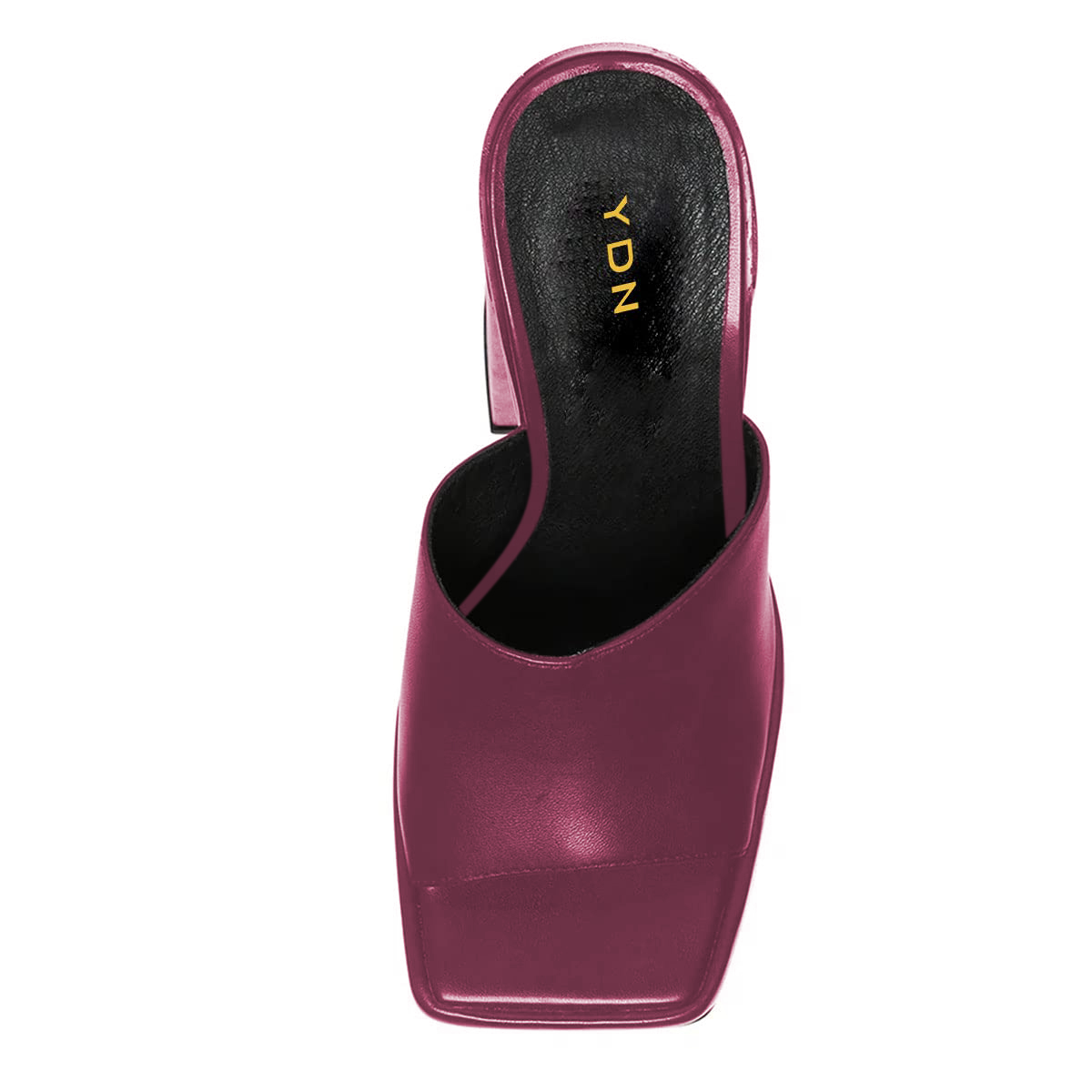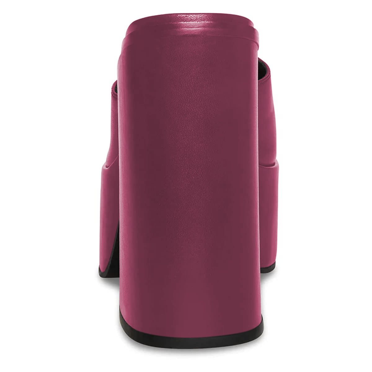 Special Designs: Magenta mules feature a bold platform, wide band design and an elegant high heel.
