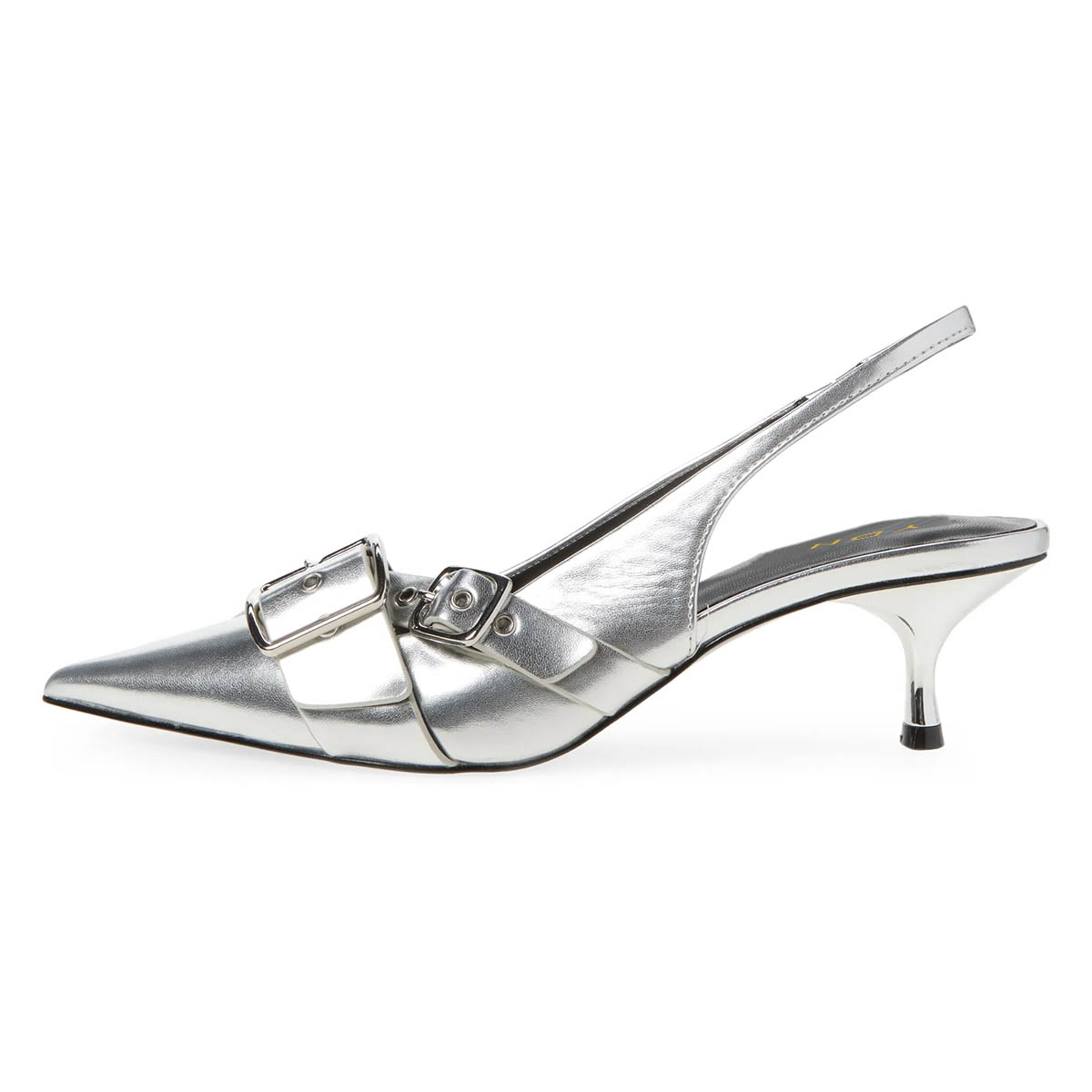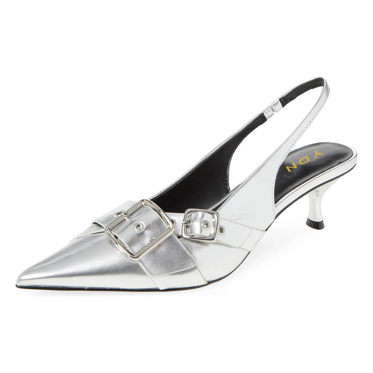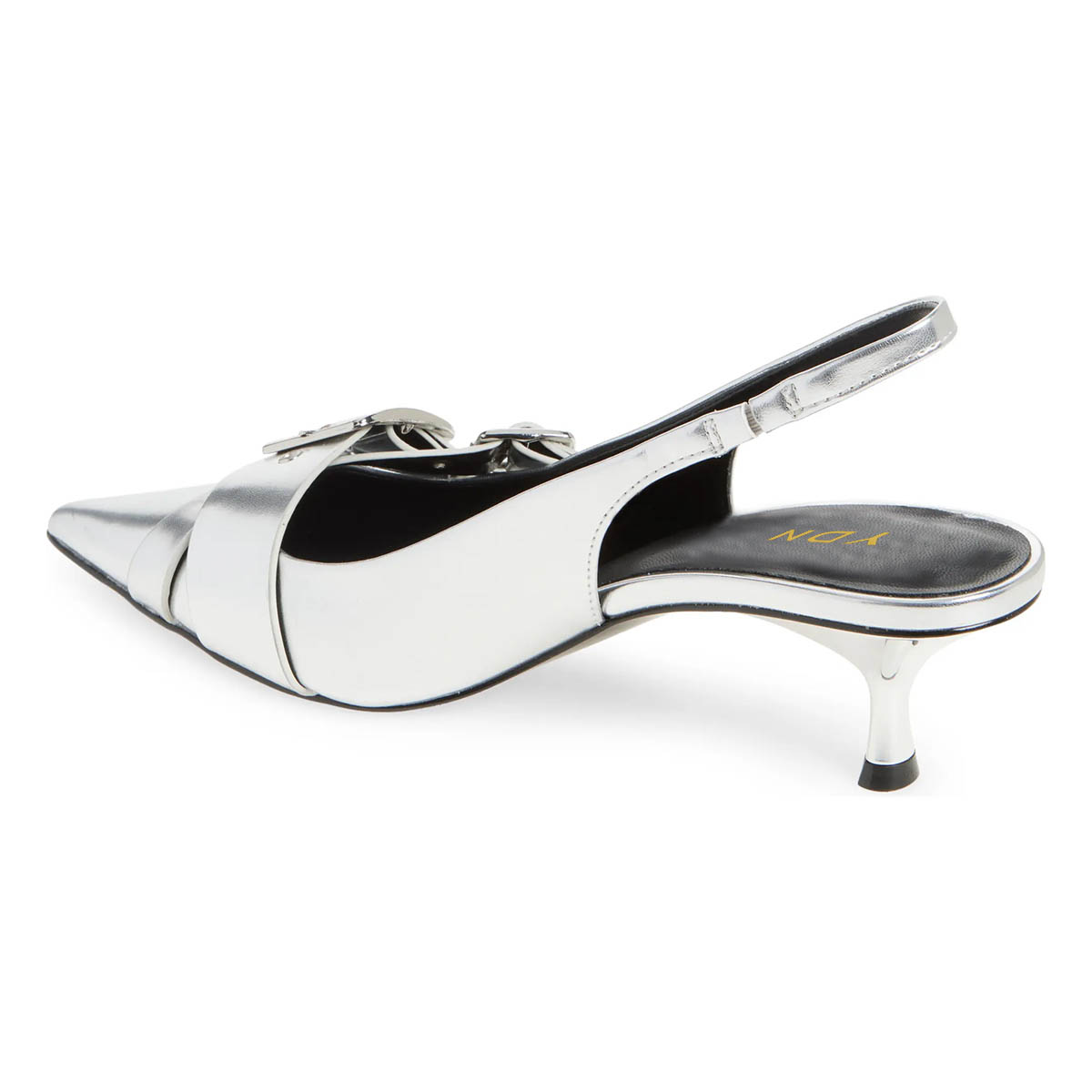 Silver Buckle Strap Pointed Toe Slingback Pumps with Kitten Heel