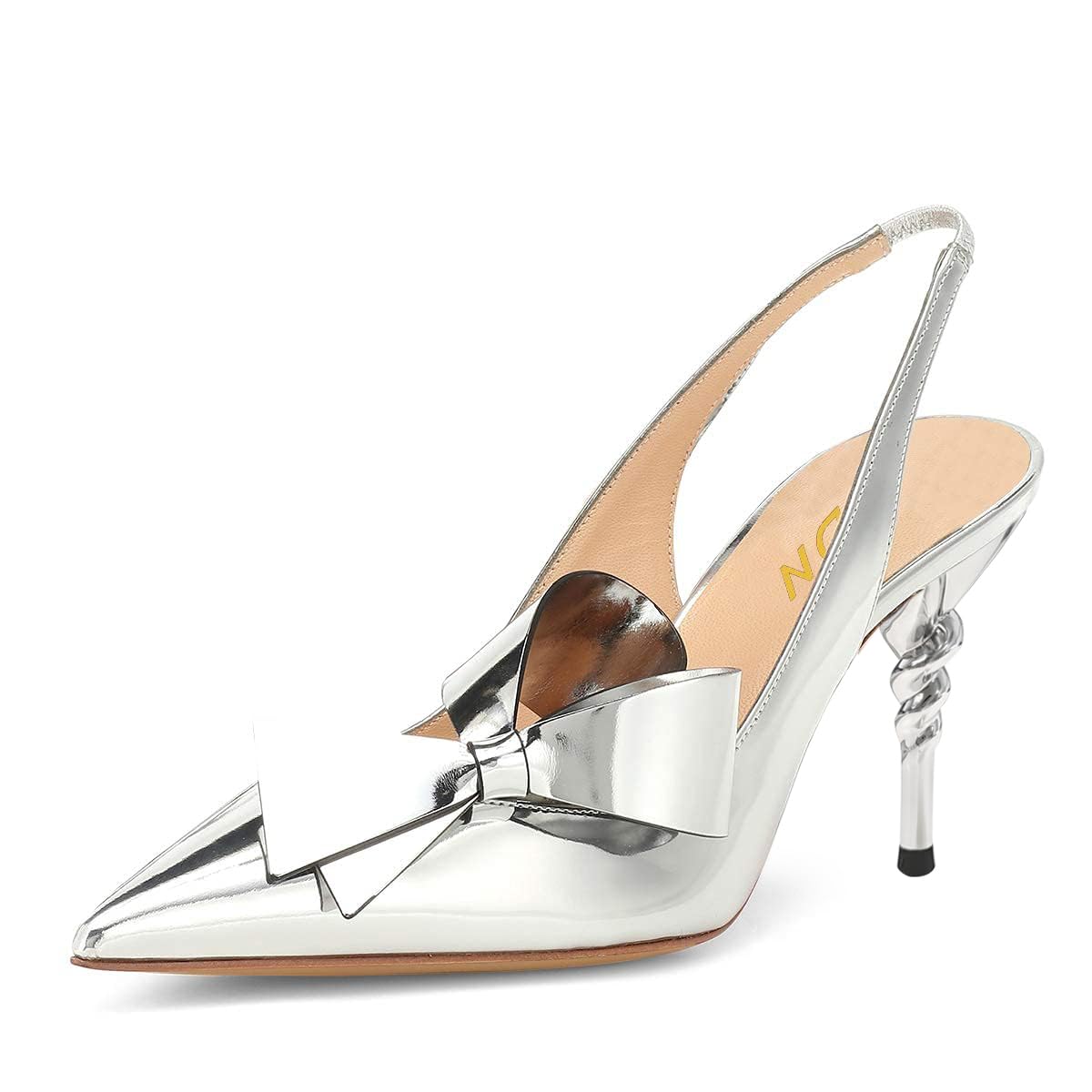 Special Designs: Silver pumps featuring a metallic touch, a stylish pointed-toe, boe inlay and decorative heel design