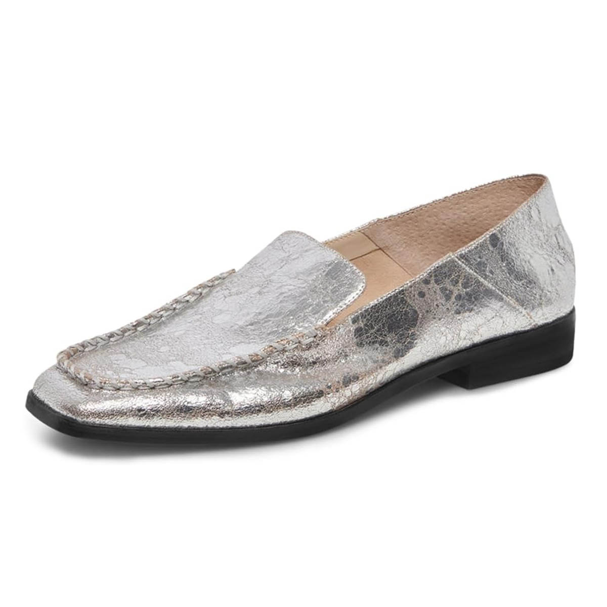 Silver Office Dressy Slip-On Square Toe Flat Loafer Shoes Women