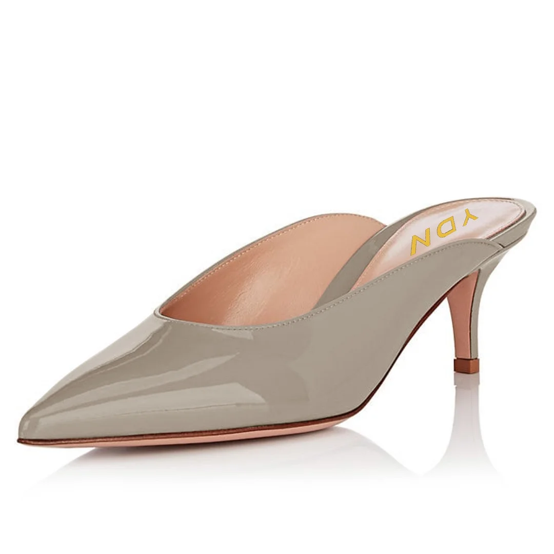 Simple Grey Pointed Toe Slip-On Mules Shoes with Kitten Heels