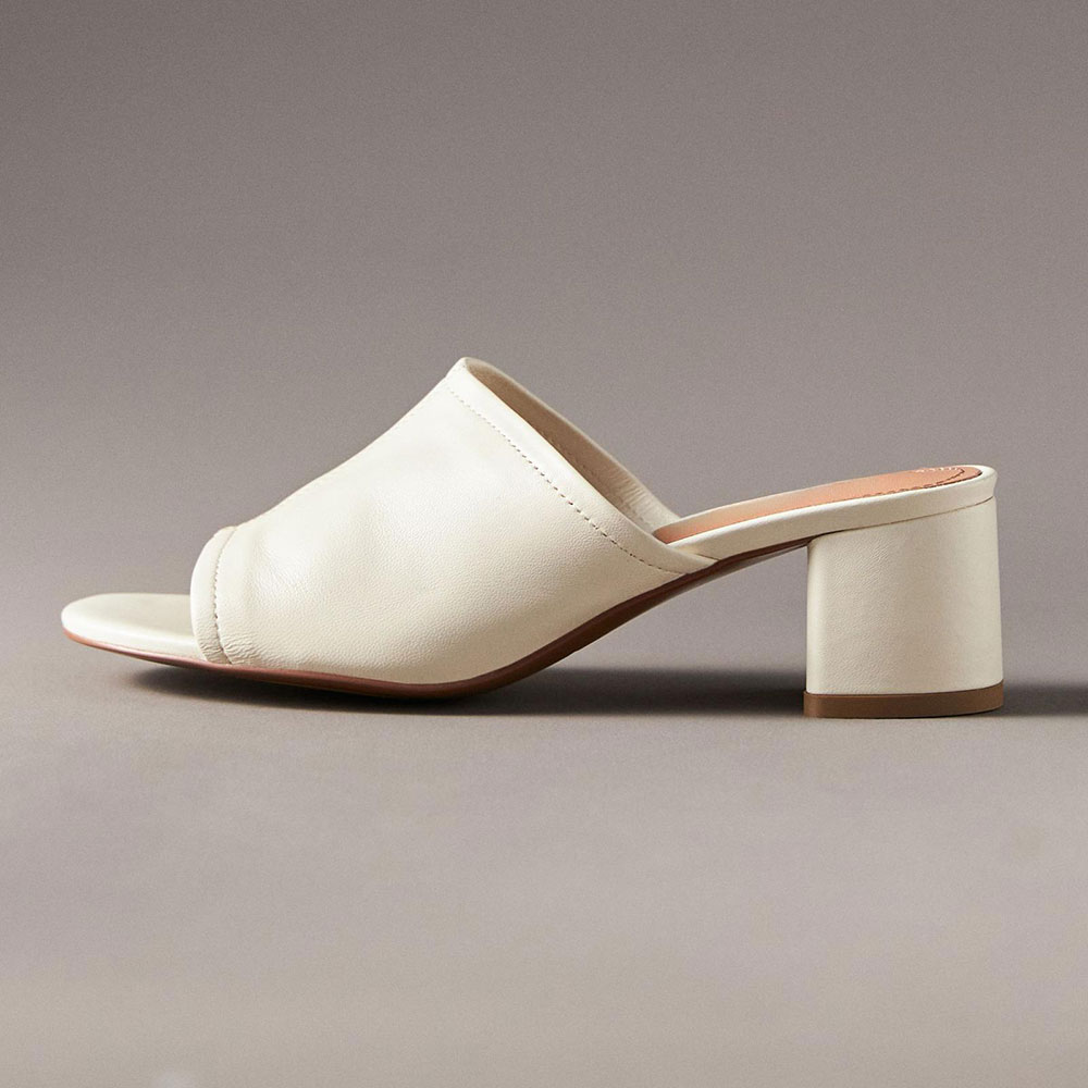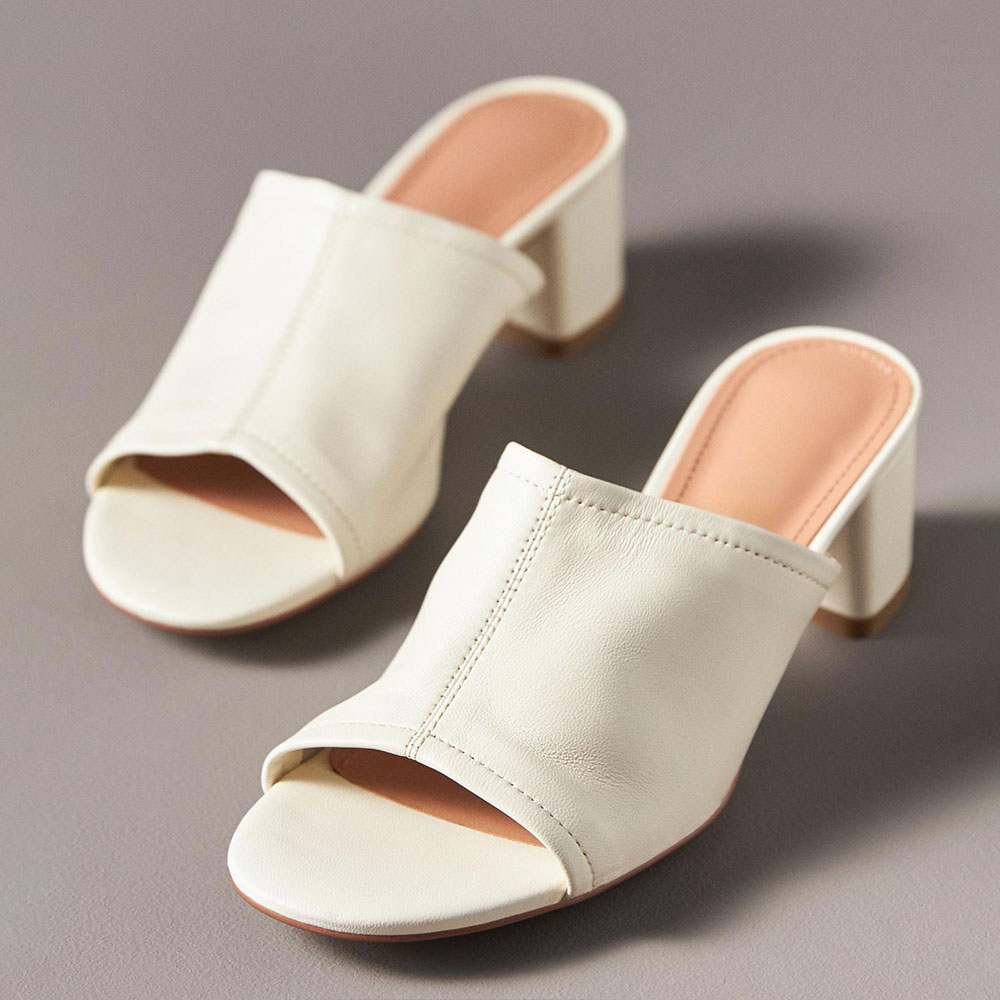 Simple Ivory Vegan Leather Open-Toe Chunky Heel Slide Sandals