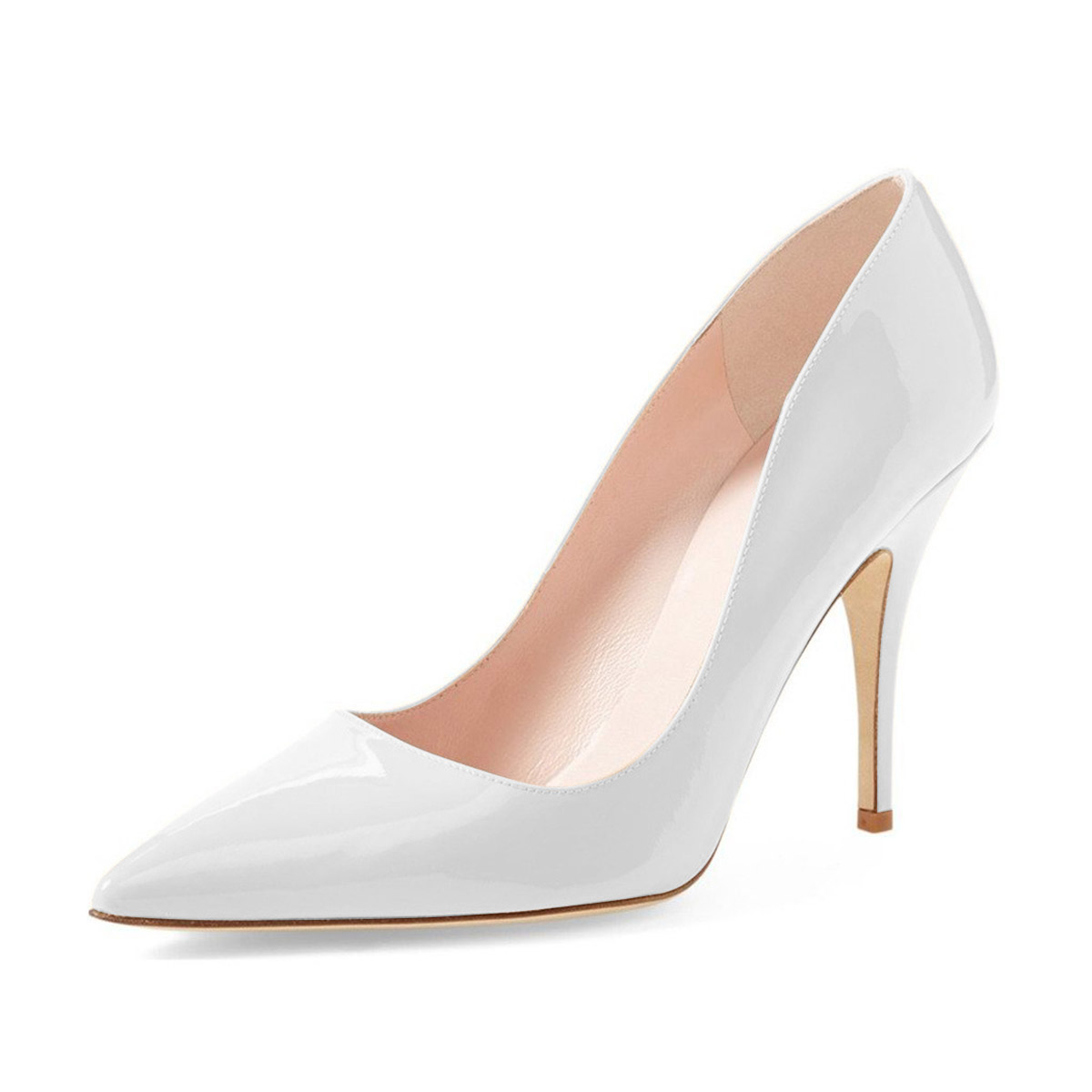 Simple Patent Leather Pointed Toe Stiletto Heel White Pumps