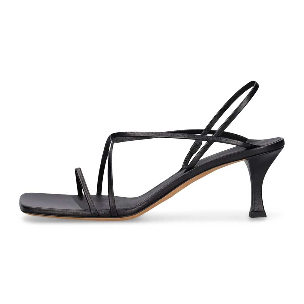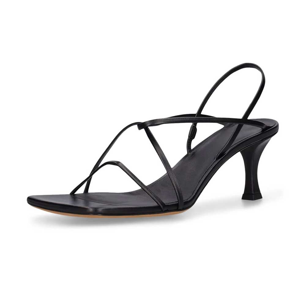 Simple Black Square Toe Crossed Strap Women Sandals with Spool Heel