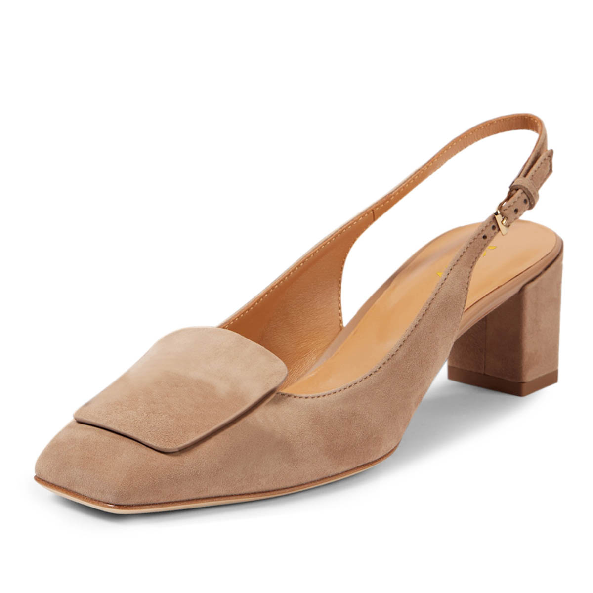 Simple Tan Vegan Suede Chunky Heel Square Toe Slingback Shoes
