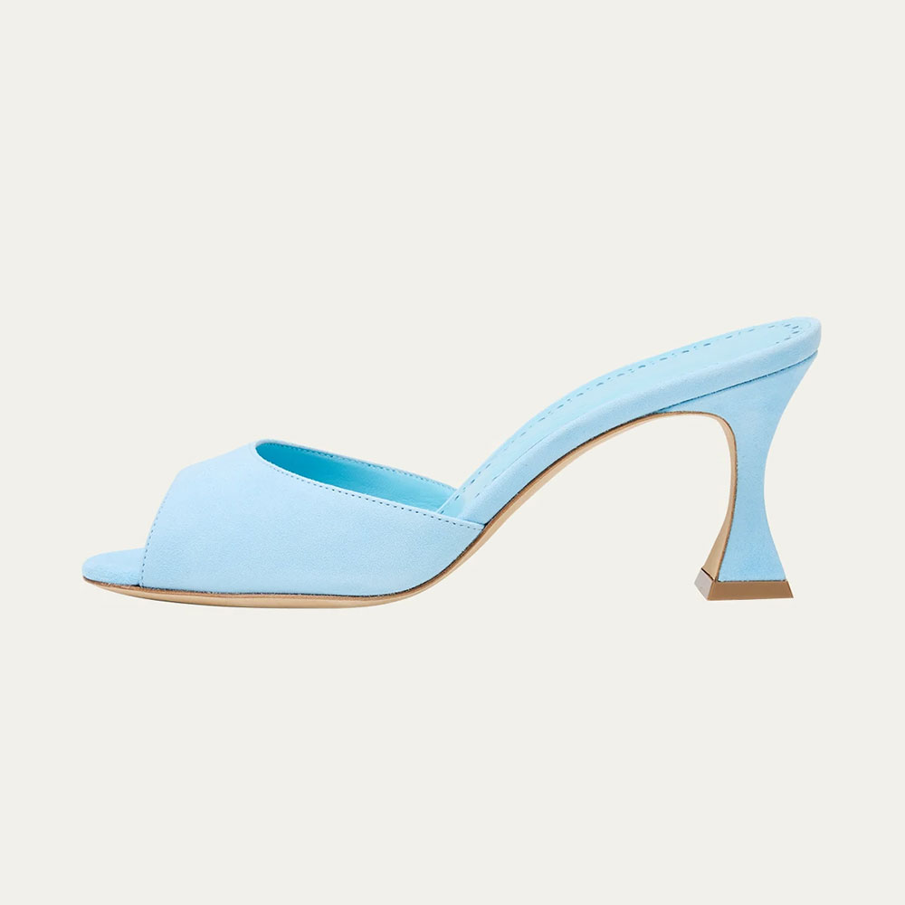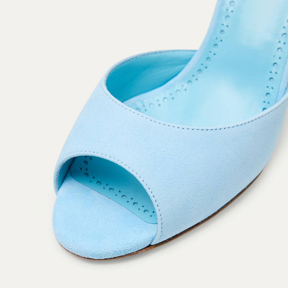 Sky Blue Flared Mid Heel Peep Toe Wide Strap Mule Shoes for Women
