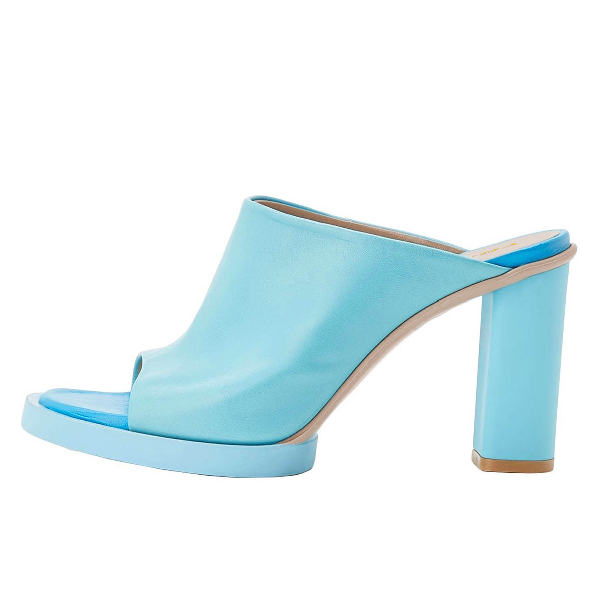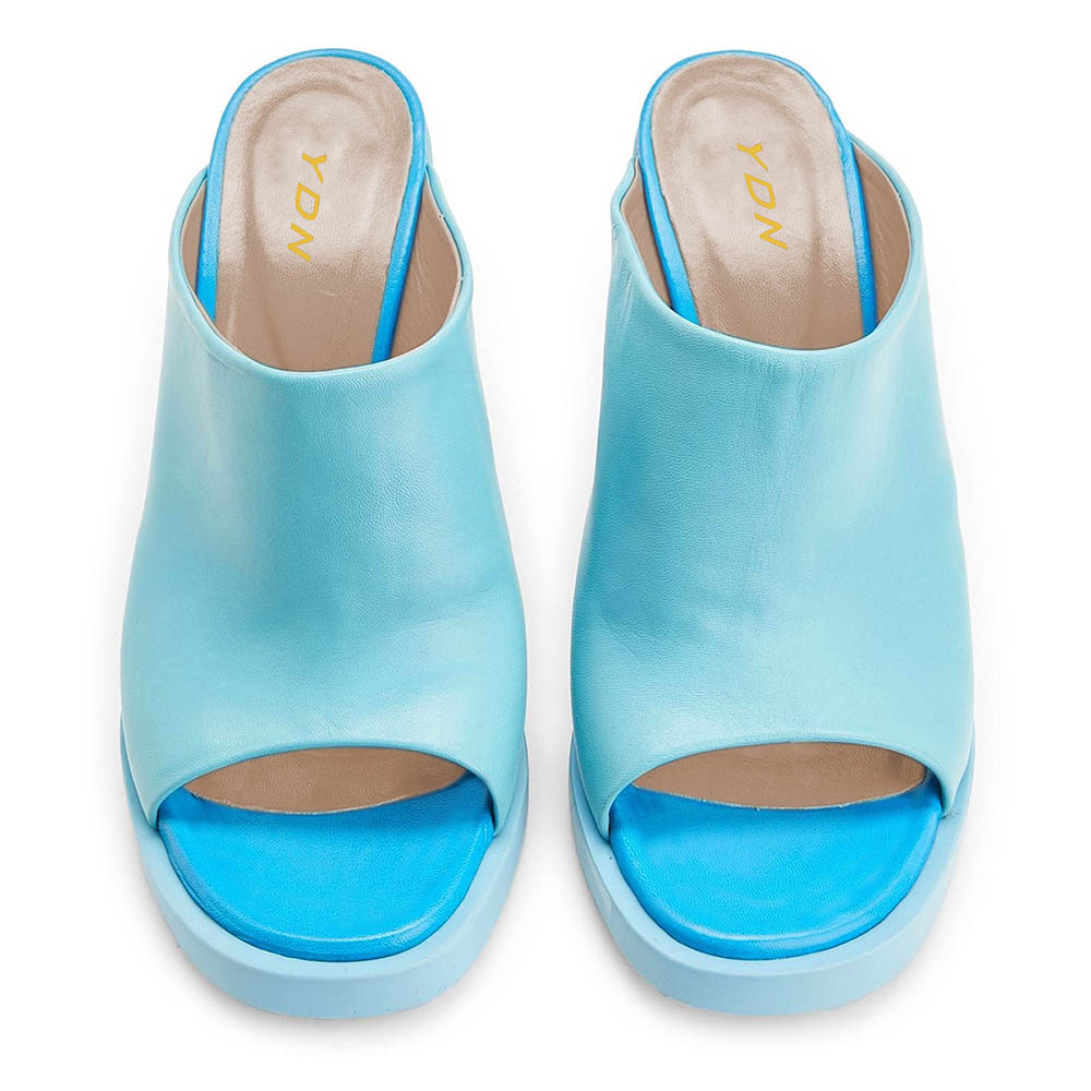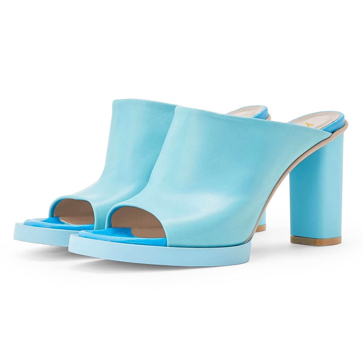 Sky Blue Open Toe Slip-On Chunky Heel Slide Shoes for Women
