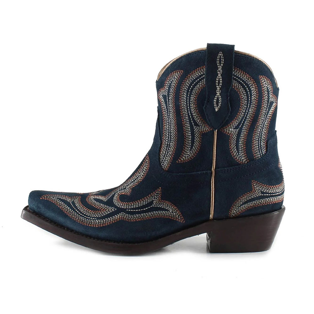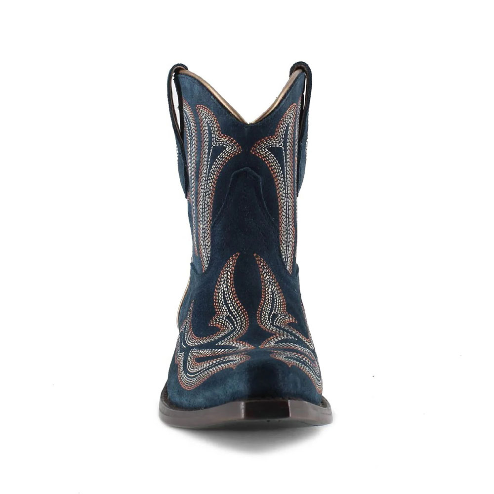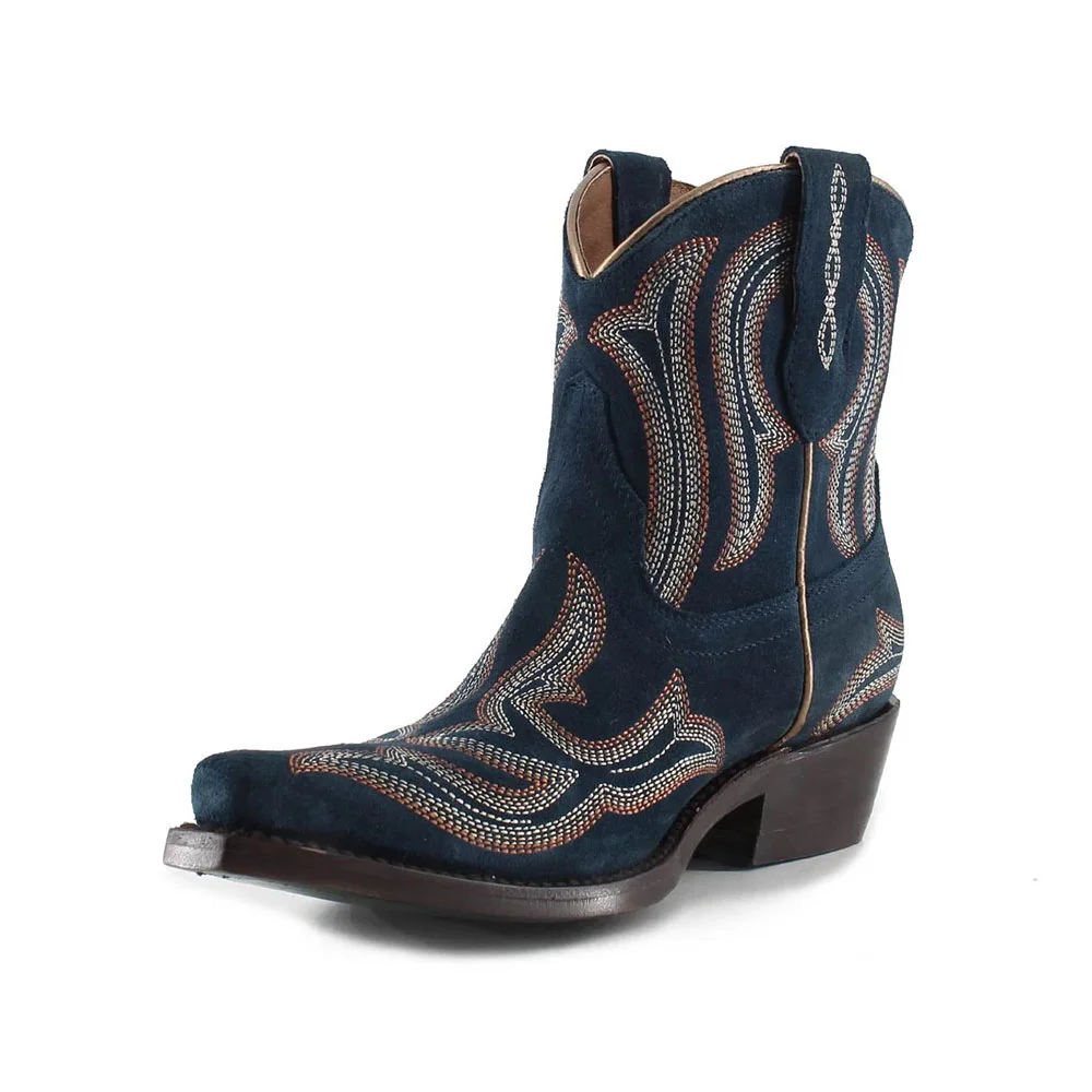 Snip Toe Block Low Heel Embroidered Navy Cowboy Boots for Women