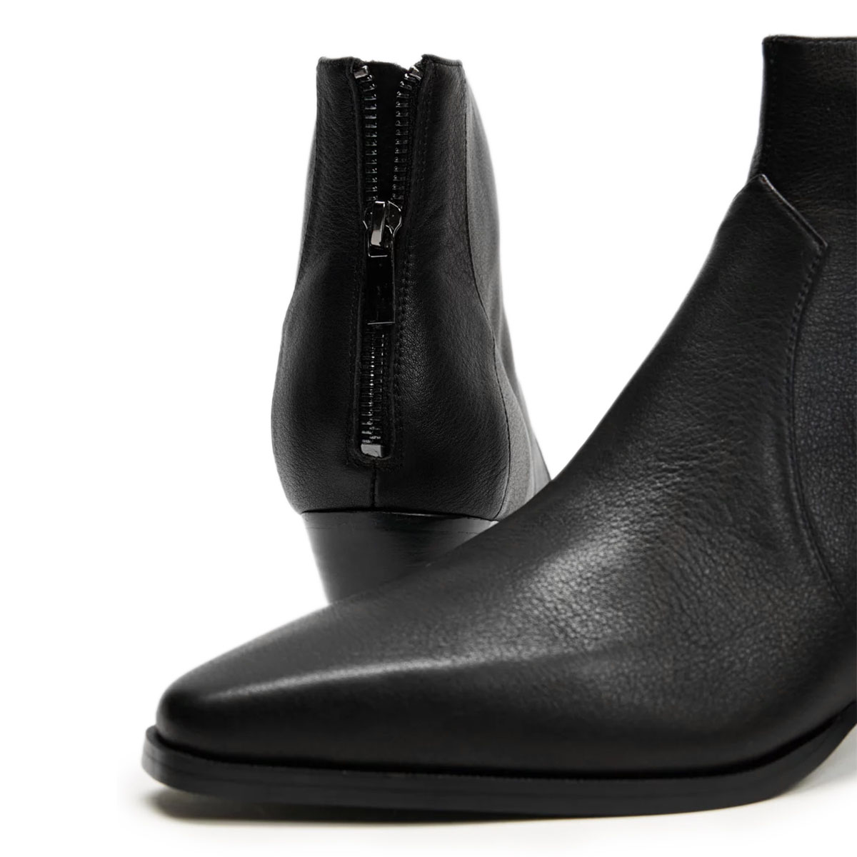 Snip Toe Vegan Leather Back-Zip Block Heel Black Ankle Booties