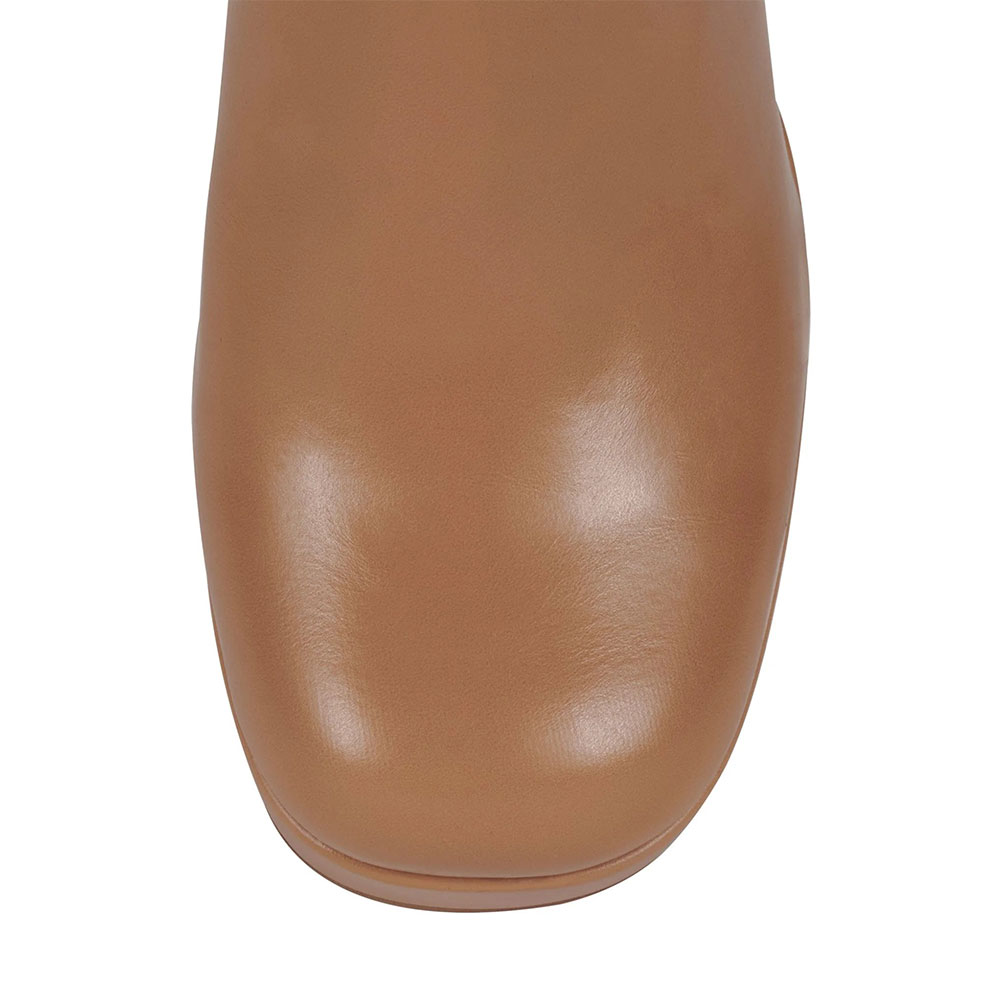 Square Toe Buckle Strap Zipper Platform Tall Boots for Women in Nude