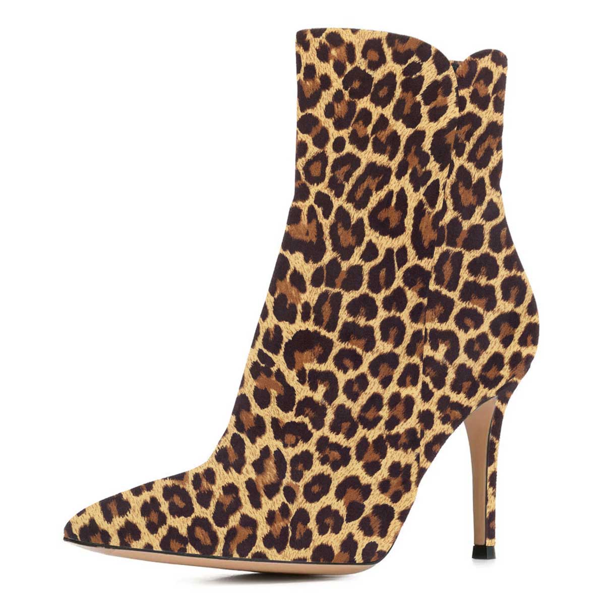 Stiletto Heel Pointed Toe Zipper Leopard Print Short Boots for Women