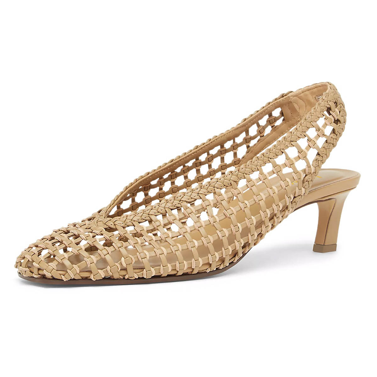 Stylish Beige Faux Leather Square Toe Cut Out Woven Slingback Pumps