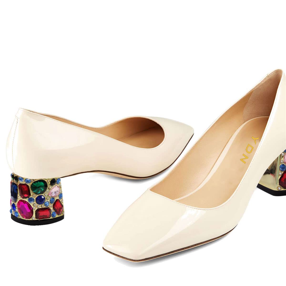 • Special Designs: The nude patent leather pumps feature a stylish square toe and colorful rhinestone decor block heel design.