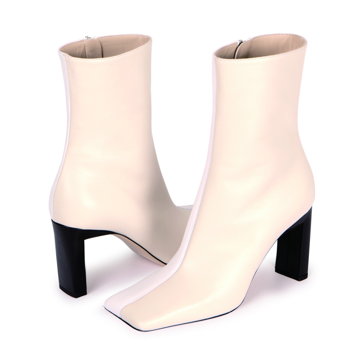 Stylish White & Beige Square Toe Side Zipper Heel Boots for Women