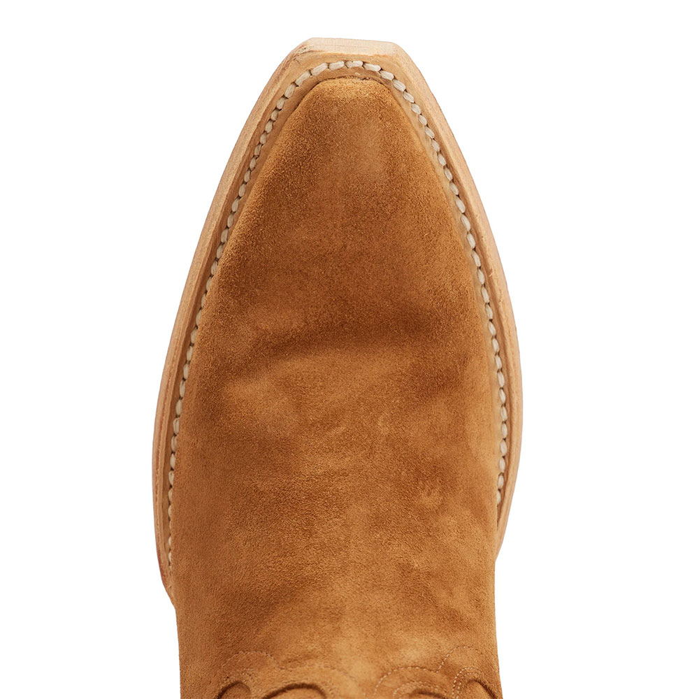 Tan Vegan Suede Sophisticated Snip Toe Low Heel Women's Western Boots