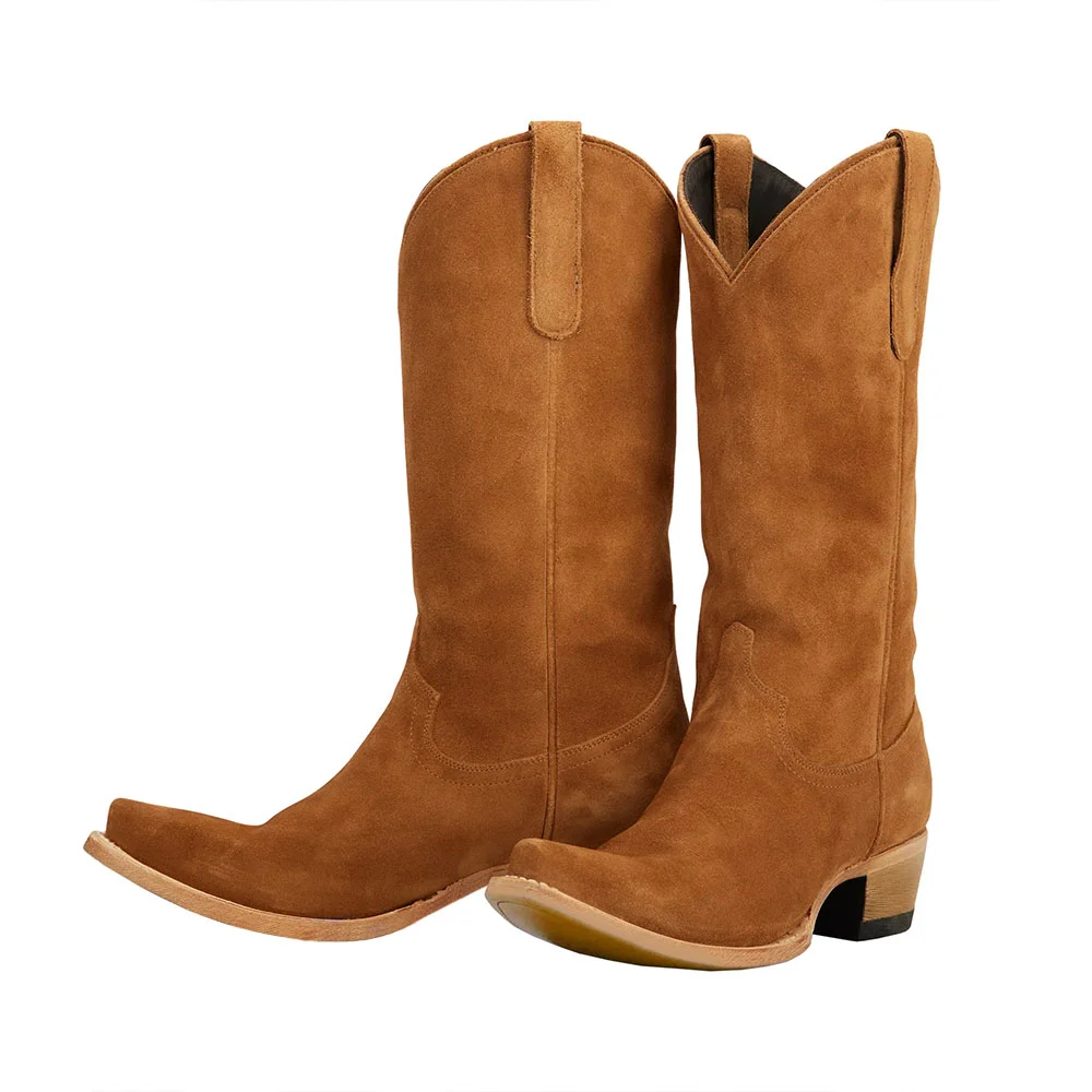• Special Design: The tan cowgirl boots with vegan suede sophistication, a classic low chunky heel, and pull-on convenience.