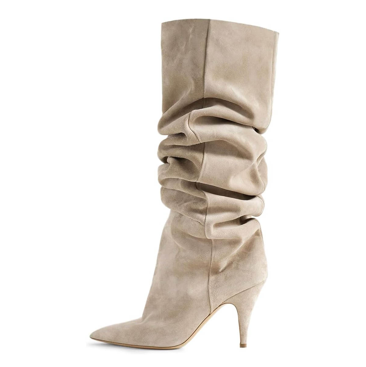Taupe Cone Heel Pointed Toe Slouch Boots Women