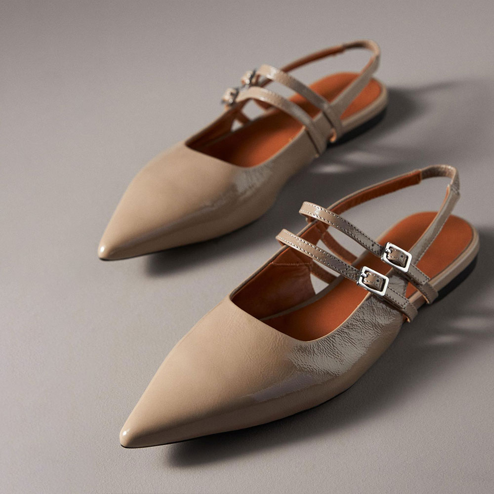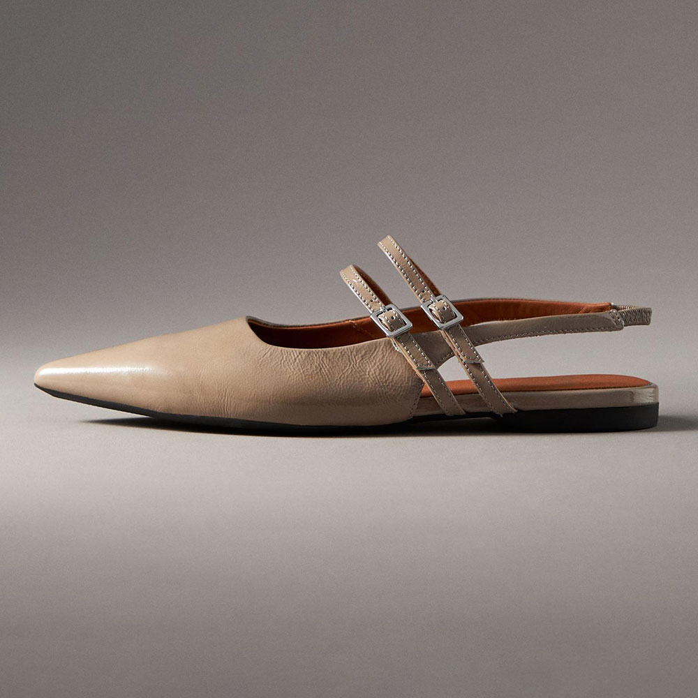 Special Design: The pointed-toe flats feature two buckled strap decorations and a slingback design.