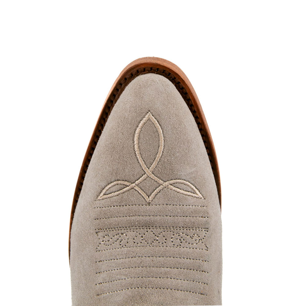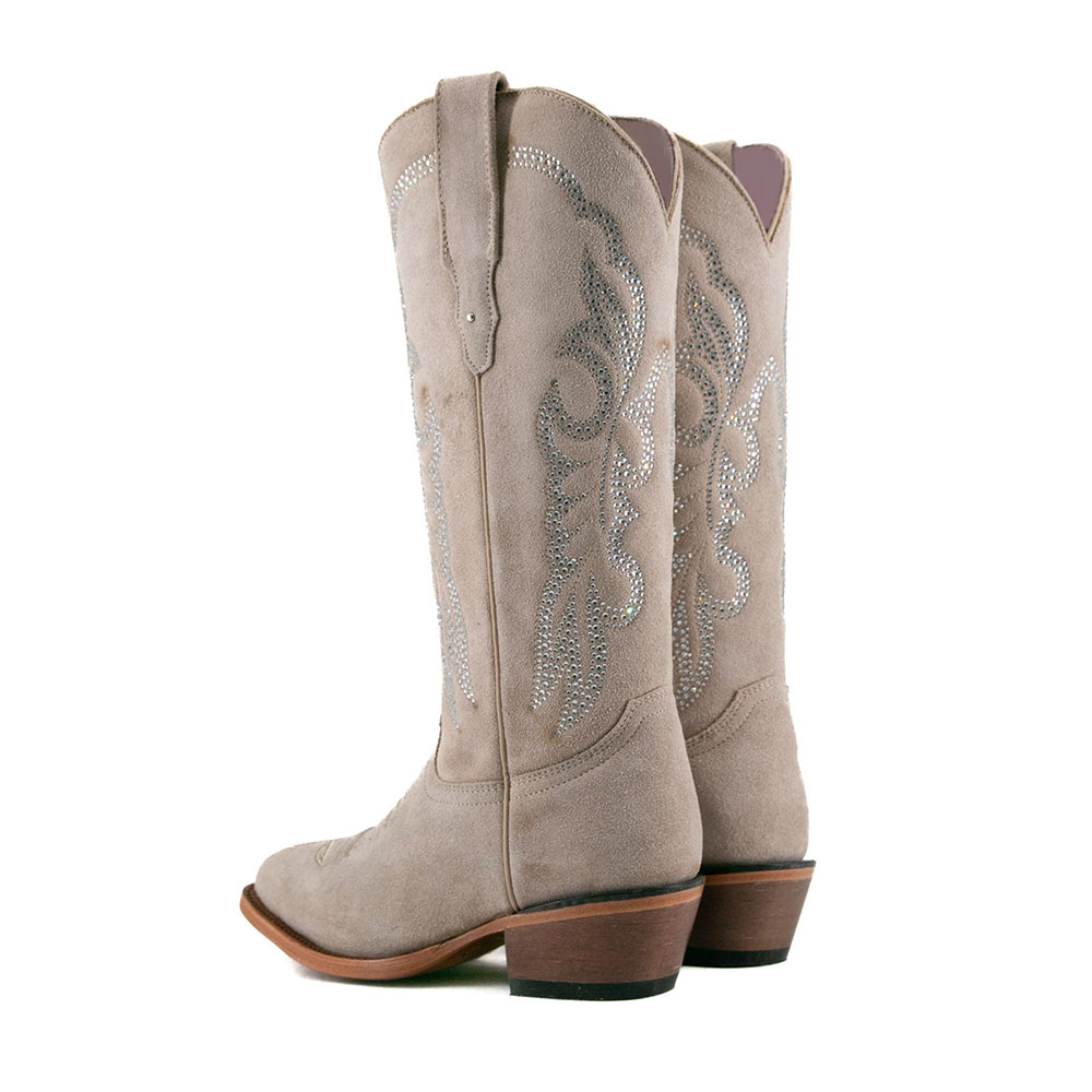 Taupe Vegan Suede Rhinestone Low Heel Almond Toe Western Boots for Women