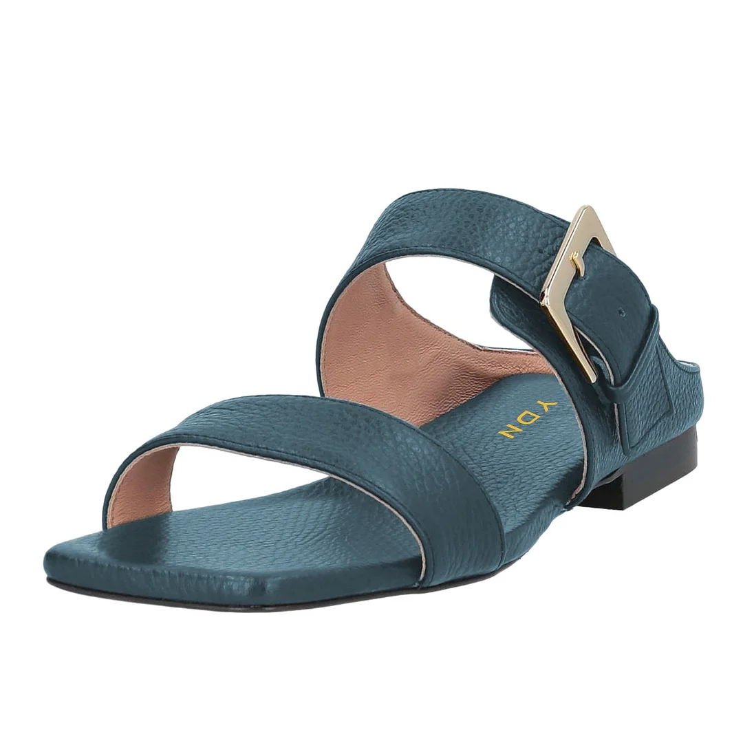 Teal Square Toe Two Straps Flat Slip On Mule Shoes for Women