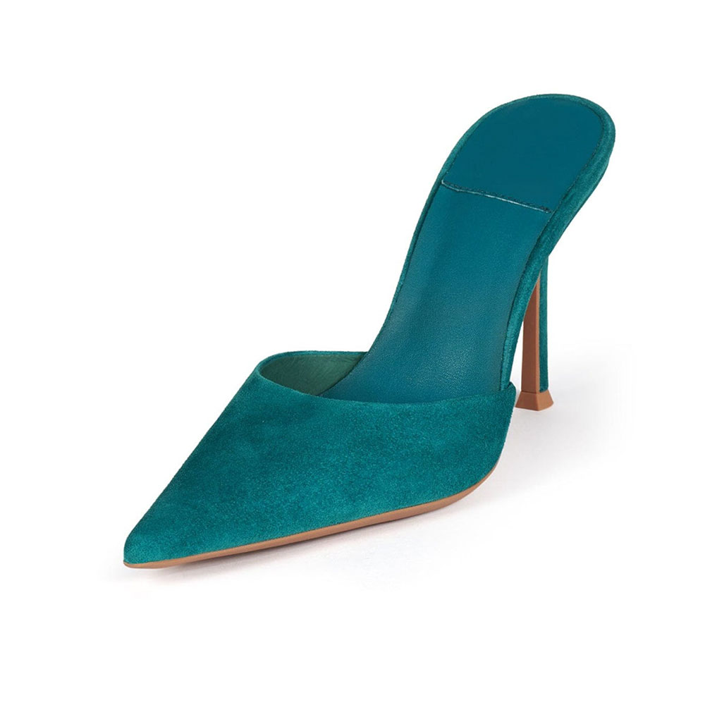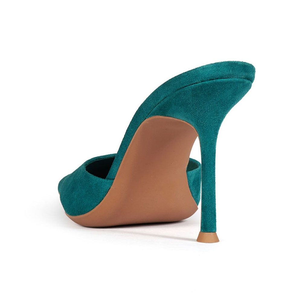 Teal Vegan Suede Pointed Toe Slip-On Stiletto Heeled Mules