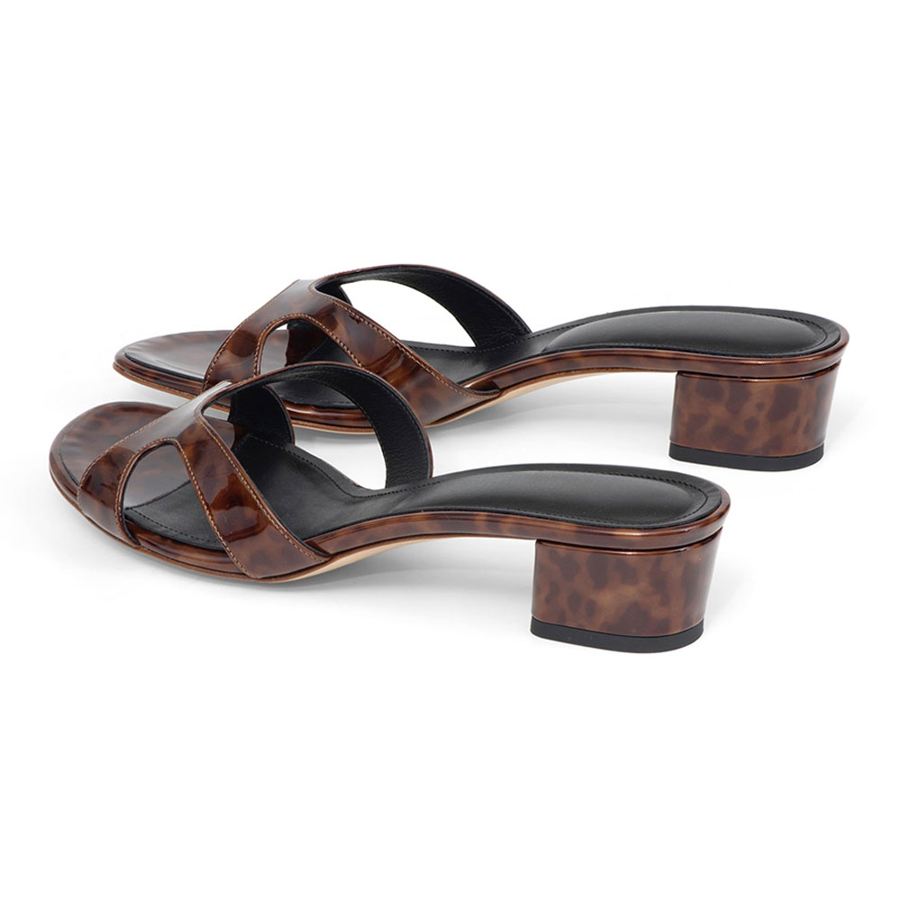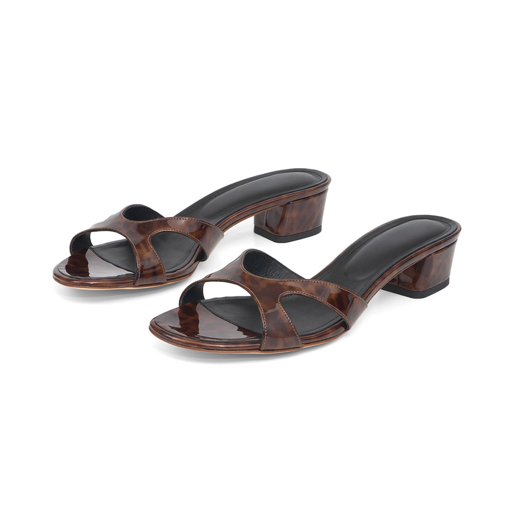 Special Designs: The open-toe mule sandals feature a cut-out design and delicate tortoiseshell print.