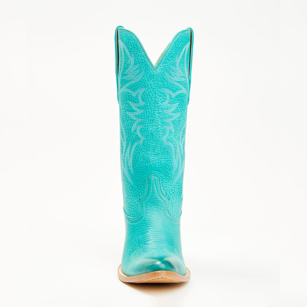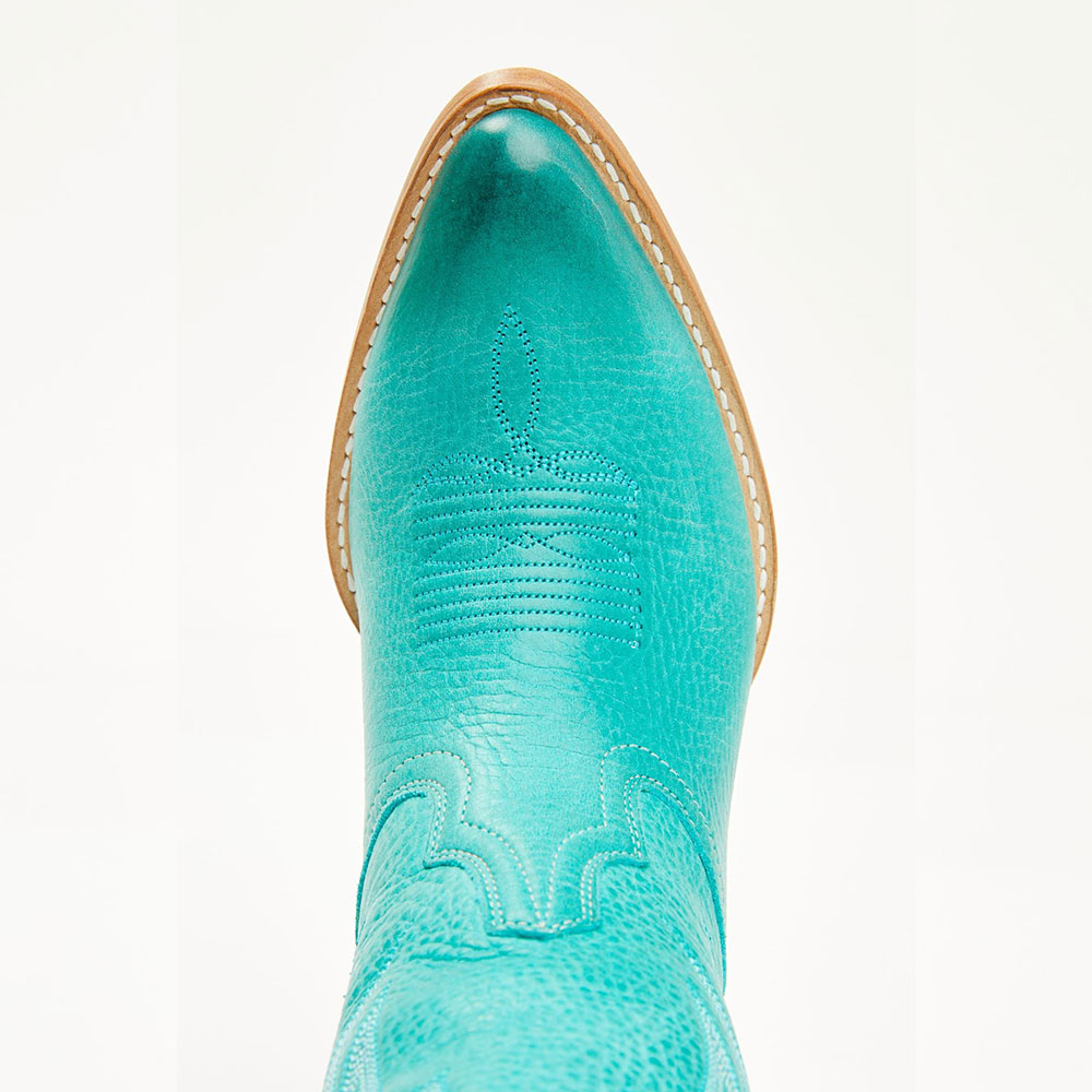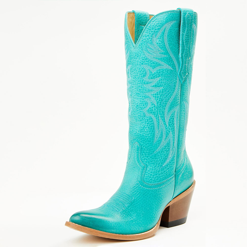 Turquoise Chunky Heel Embroidered Almond Toe Western Boots for Women