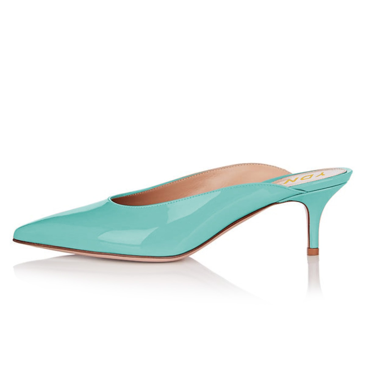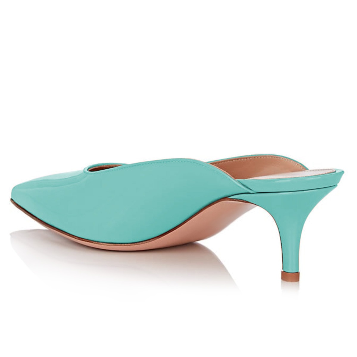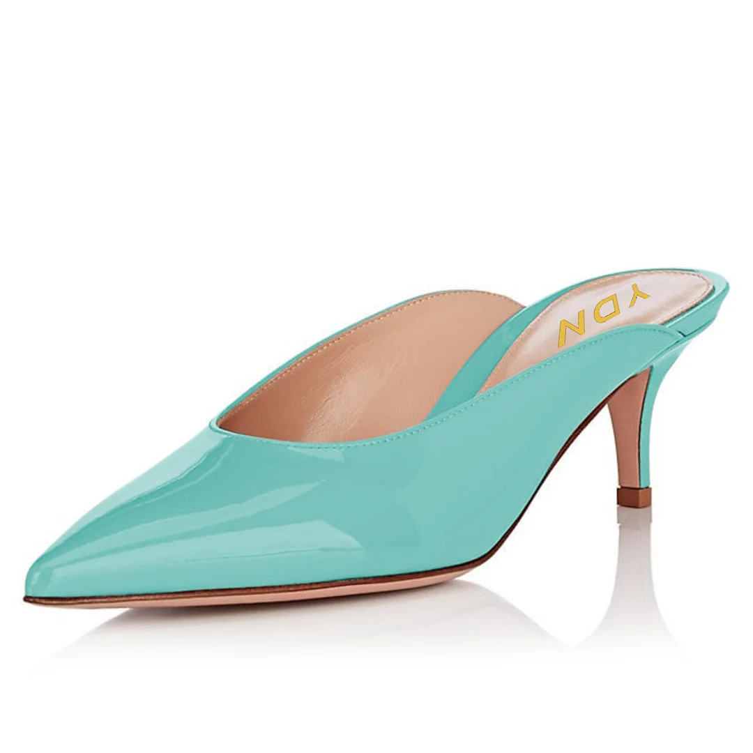 Turquoise Pointed Toe Slip-On Kitten Heel Mules for Women