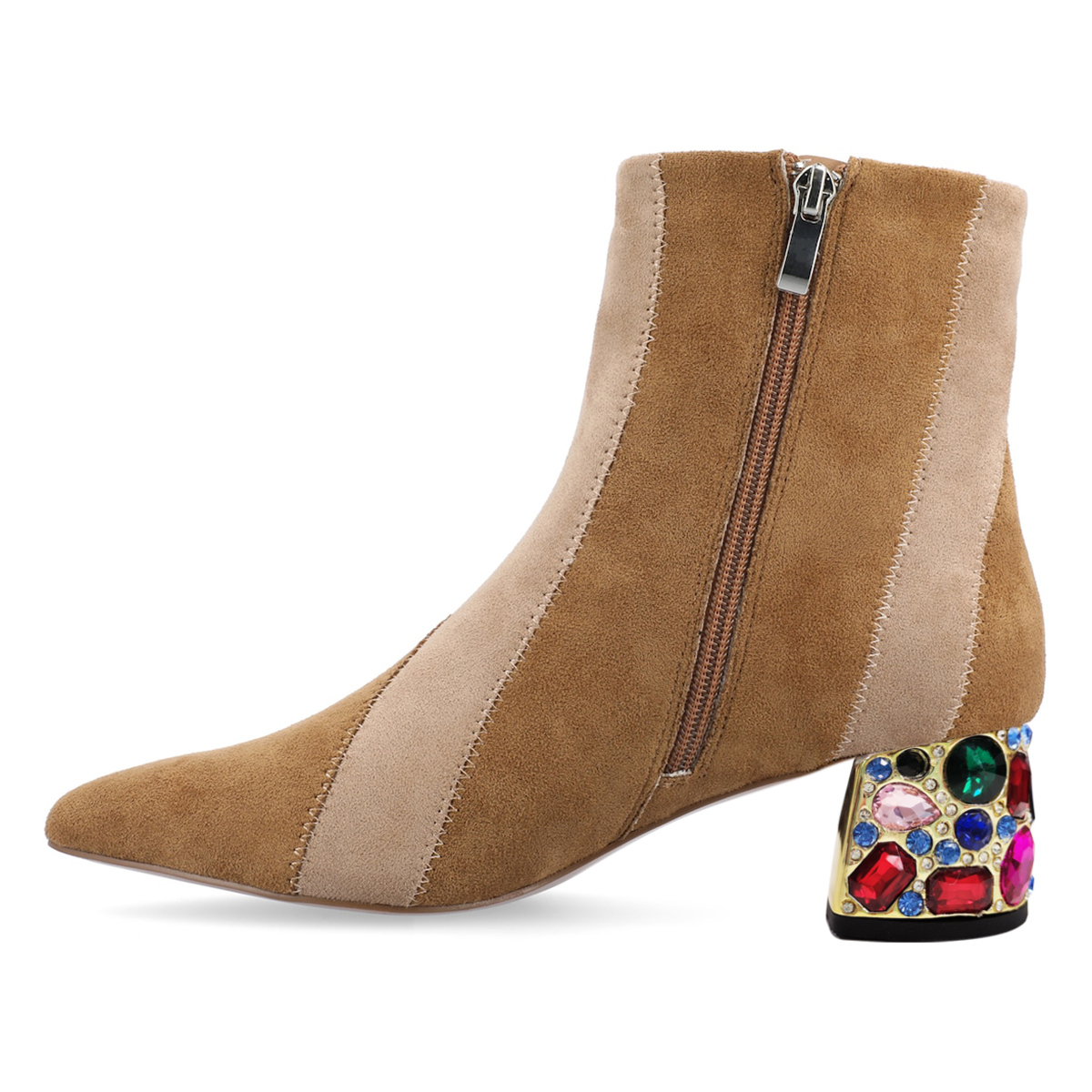 Two Tone Faux Suede Rhinestone Embellished Ankle Boots in Beige