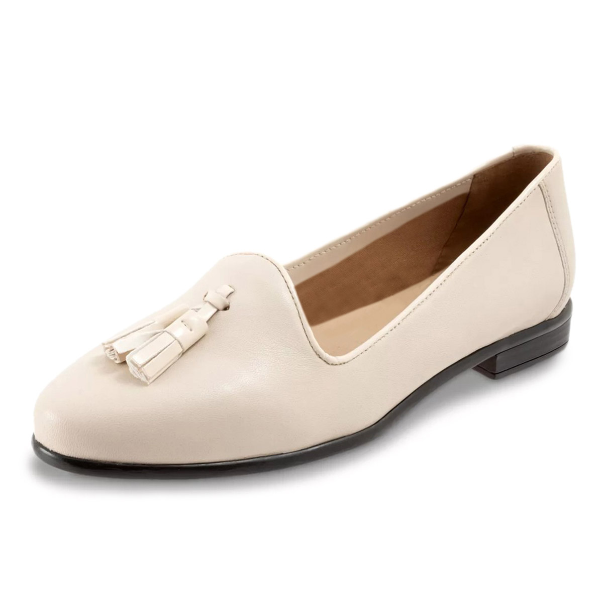 Special Designs: The beige flats feature chic tassel accents and almond toes.