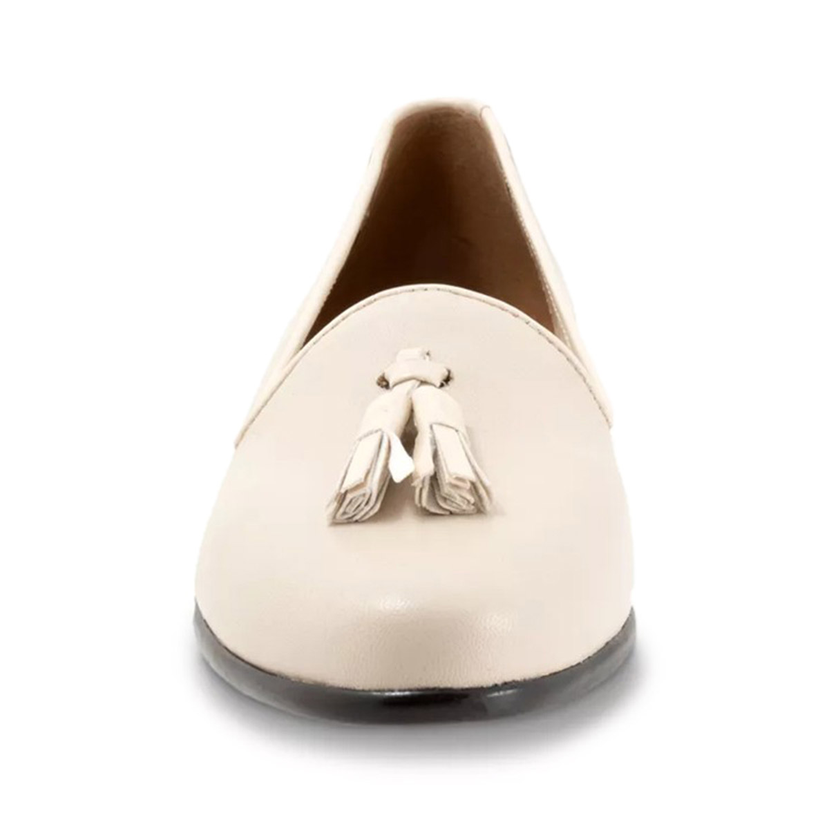Vegan Leather Closed Toe Shoes Tassels Decor Flats in Beige