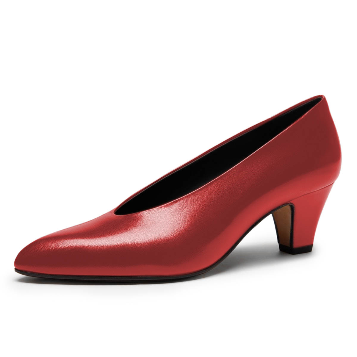 Vegan Leather Low Chunky Heel Pointed Toe Red Pumps for Women