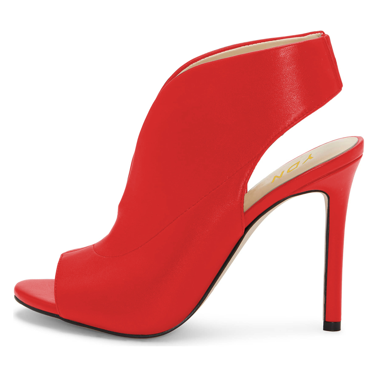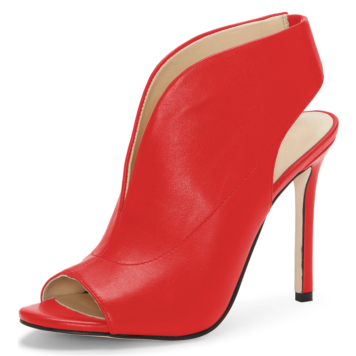 Vegan Leather Peep Toe Slingback Design Classy High Heels in Red