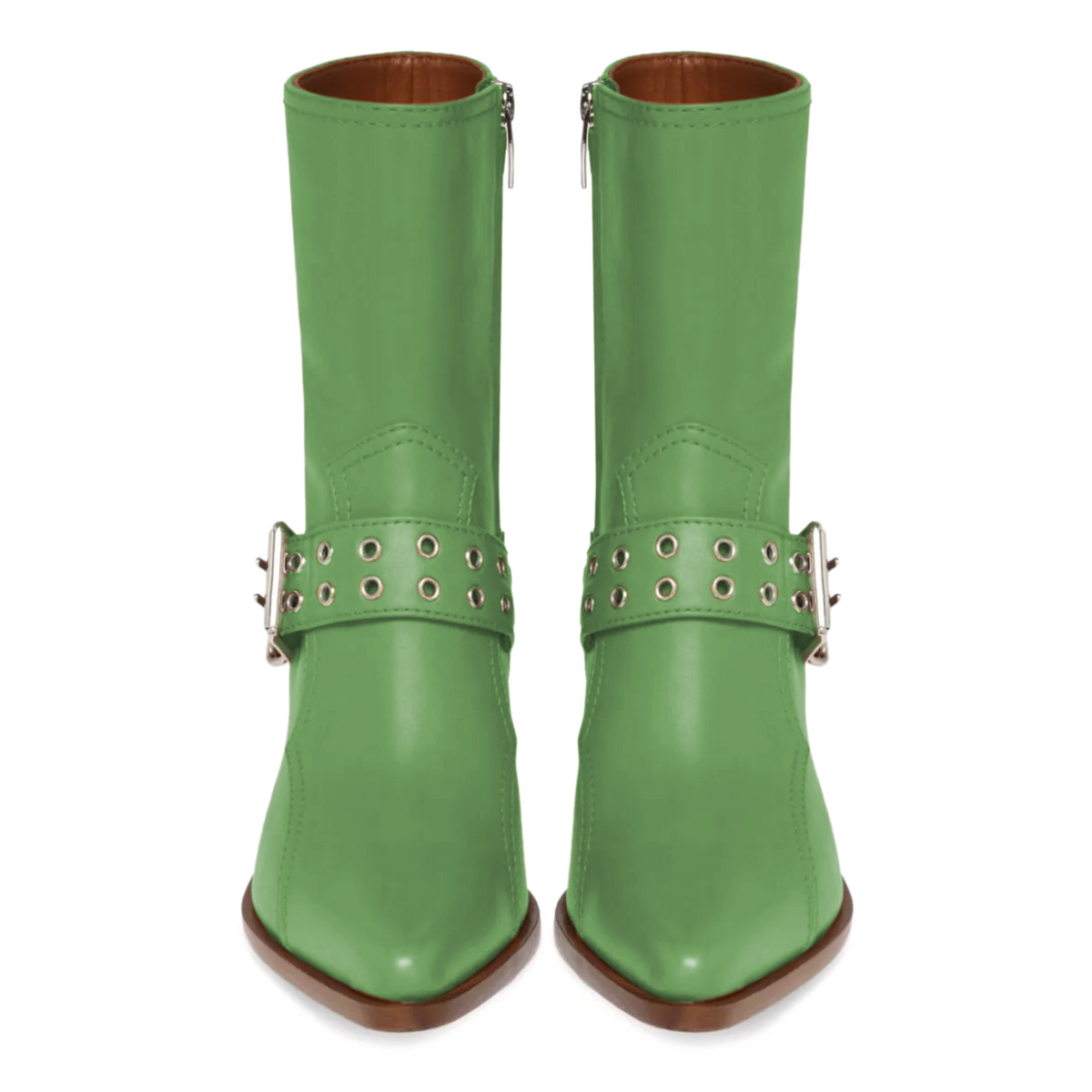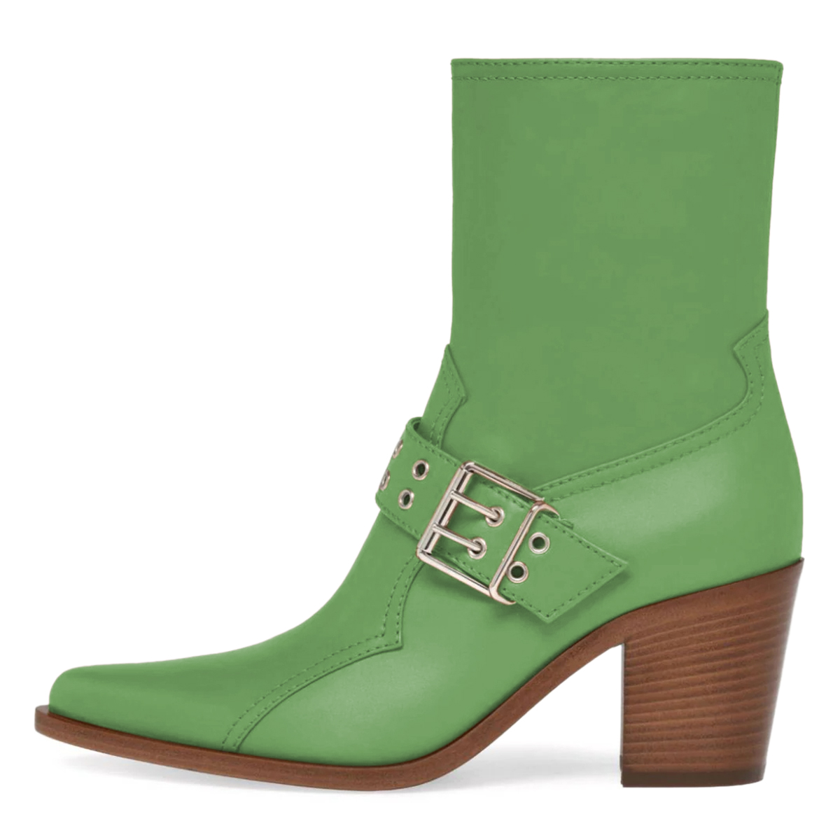 • Special Designs: Green ankle boots with classic block heels and pull-on convenience.