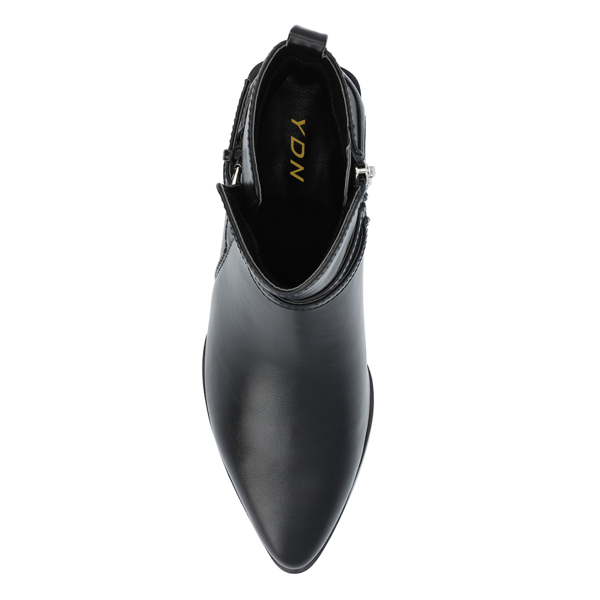 Vegan Leather Pointed Side-Zip Decorative Heel Black Ankle Boots