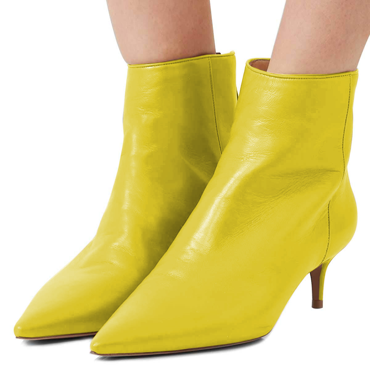 • Special Designs: Yellow classy ankle boots featuring a classic kitten heel and a back-zip closure.