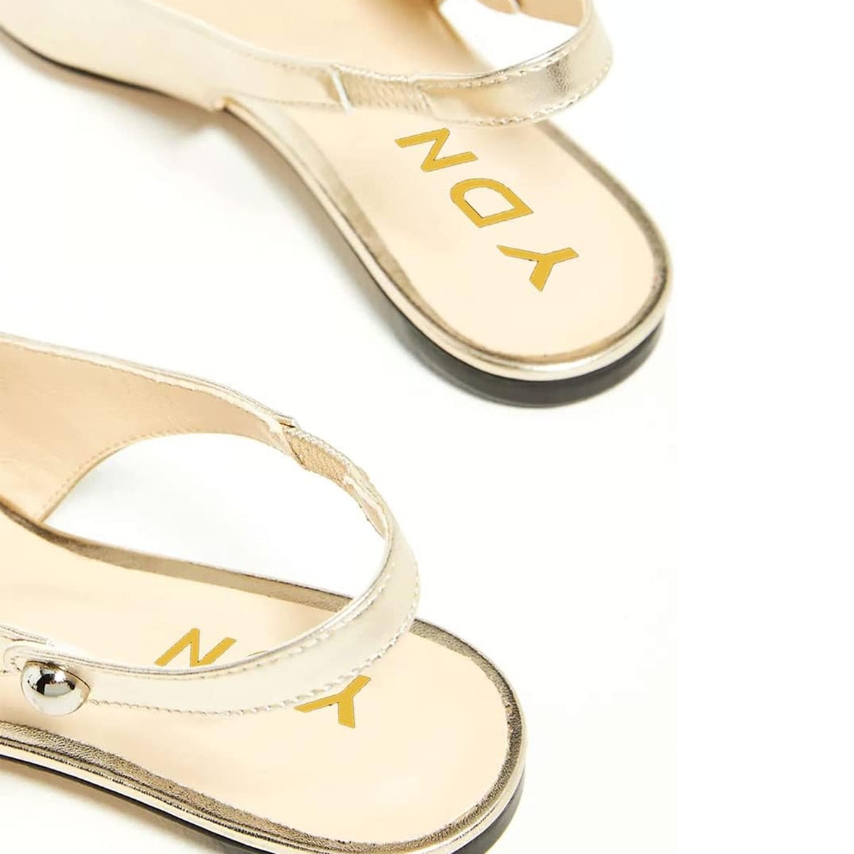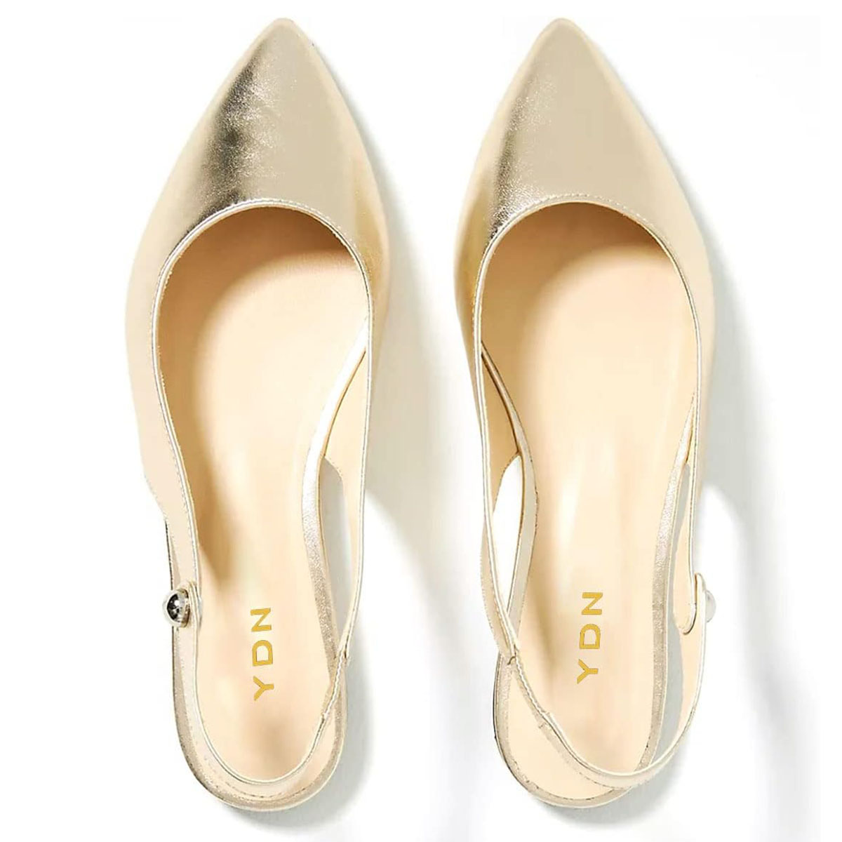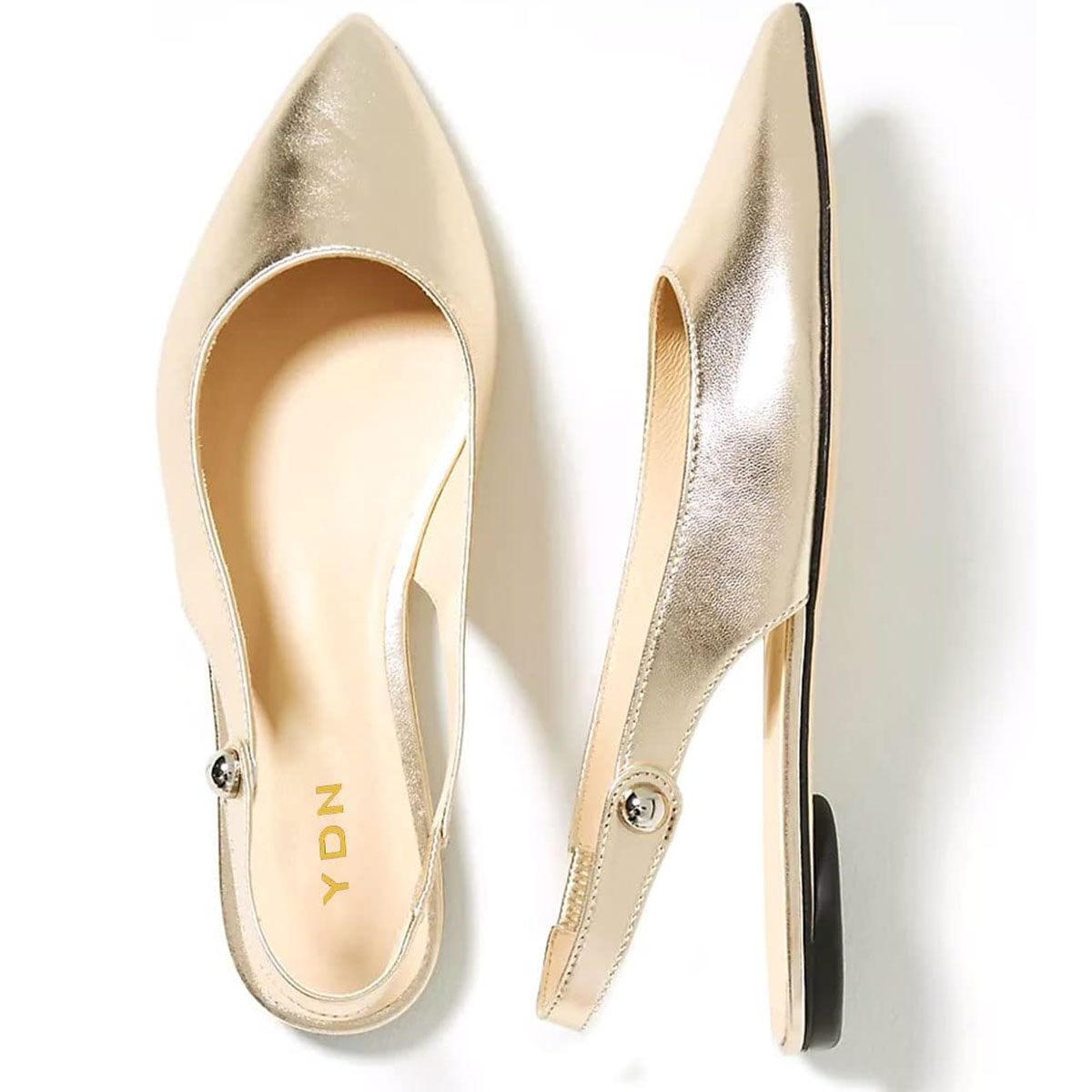 Special Designs: Gold comfortable slingback flat pumps with slip-on convenience