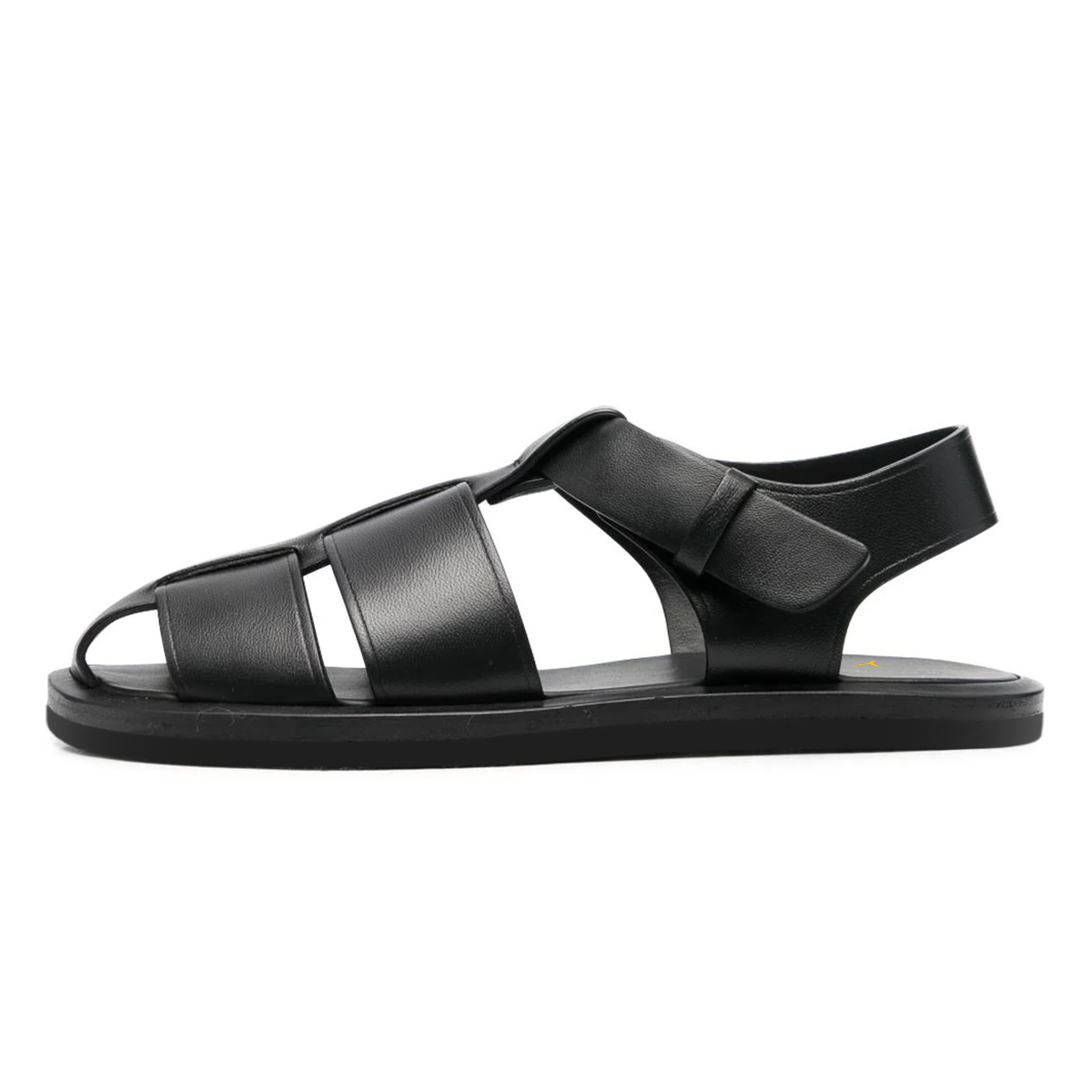 Vegan Leather Round Toe Cage Flat Comfy Black Sandals for Ladies