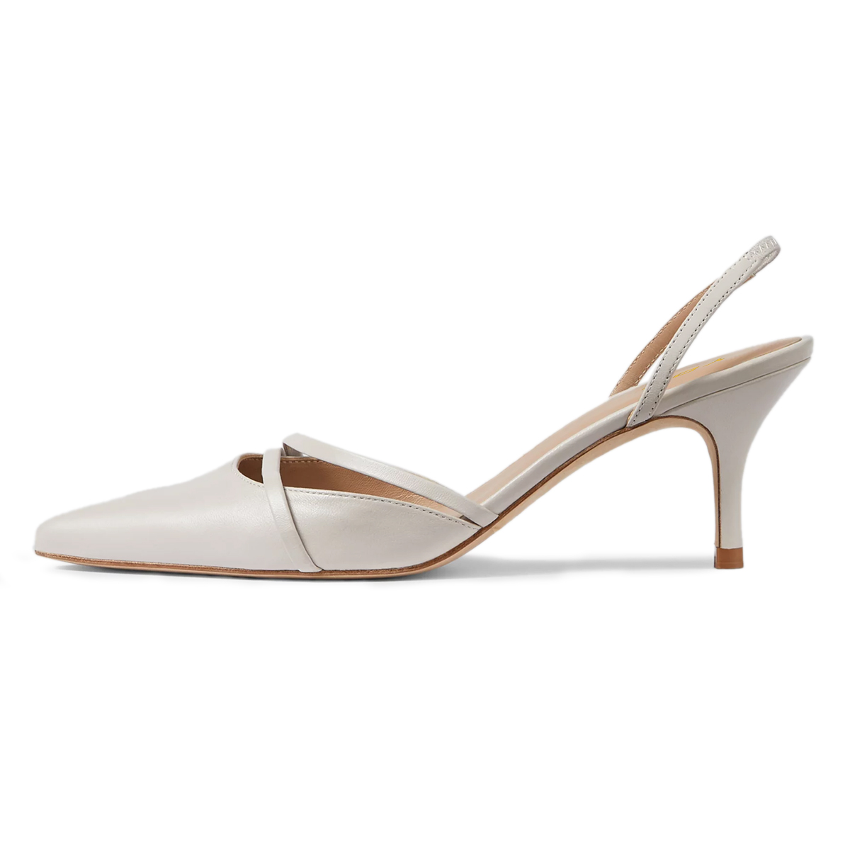 Vegan Leather Sophisticated Pointed Slingback Pumps in Ivory