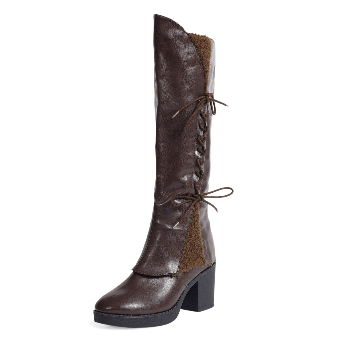 • Special Designs: Dark brown  knee-high boots feature a round toe, lace-up design and a classic block heel
