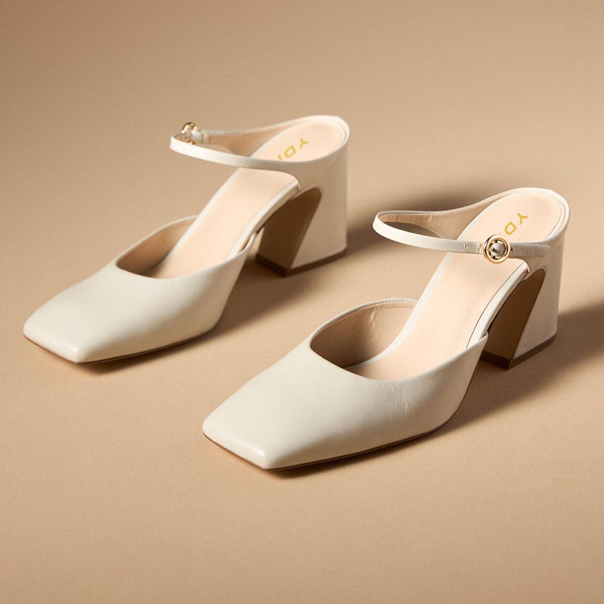 Vegan Leather Square Toe Block Heel Mary Janes in Off-White